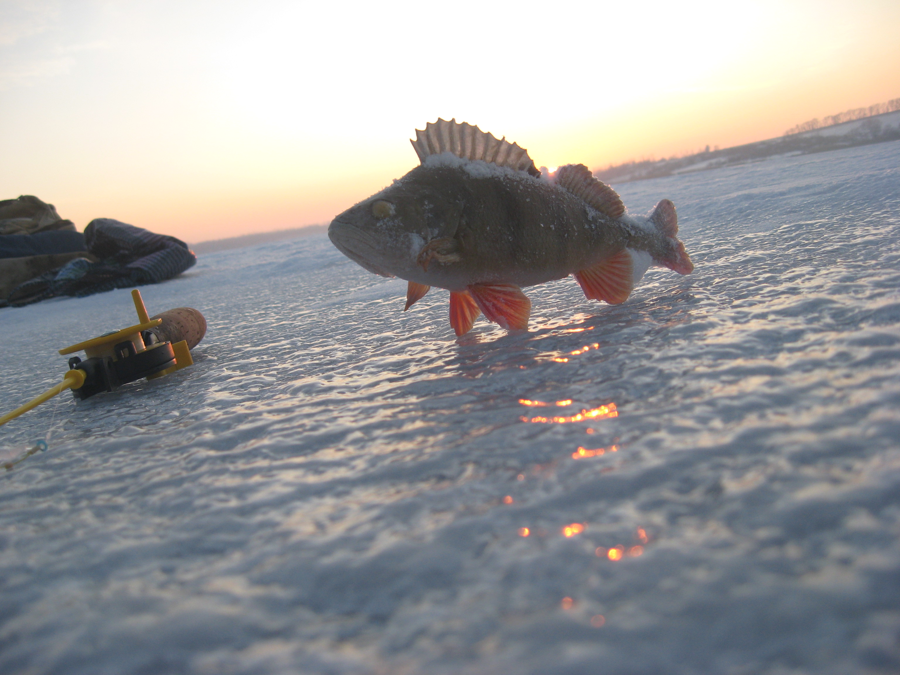 Открытие сезона - "Зима2009/10" состоялось!!!Сегодня в 6:00 уже на месте.Решили с отцом отдать предпочтение мелководным плесам перед малой дамбой(р-н Зелёновки).Через пять минут после начала ловли,ещё в рассветных сумерках - первая поклёвка,и зачетный матрос,грамм под 200 на льду!Приятное начало-заслуга отца(блеснение)!!!Долго расписывать,при всём желании,не буду,ограничусь только полезной информацией:окушок разных размеров клевал исправно вплоть до нашего отъезда домой (15:30),к обеду народу рядом с нами ужо было человек 20!!!Клевало у всех!!Ловили на мотыля или блёсенку.Но,забегая на перёд,отмечу,что у большинства - полосатый разбойник редко превышал размер в 100-150гр.Я же из-за постоянного ветра и мороза,доставляющих кучу неудобств при наживлении мотыля(а при активном клёве-это очень частая процедура)решил отказаться от последнего,и упёрся в безмотылку-как результат,полосатый ощутимо крупнее,даже визуально,преобладал в улове(150-300гр).Ставили и жерлицы с мелким окуньком - ОП!!,если не считать один холостой выстрел.У местных жерличников-тоже самое (хоть у них и на карасика)!!!В целом же рыбалка оч. понравилась!Хватит и на уху и на жарёху!!А главное получено массу положительных эмоций от самого процесса,и от общения с "коллегами по цеху"!!