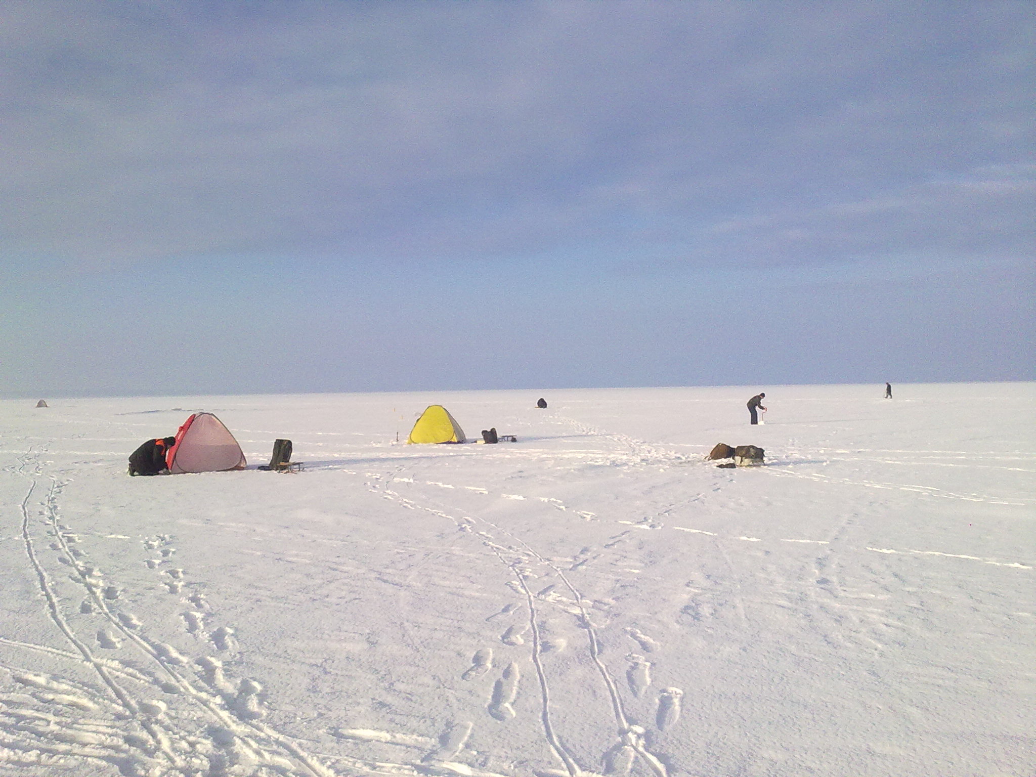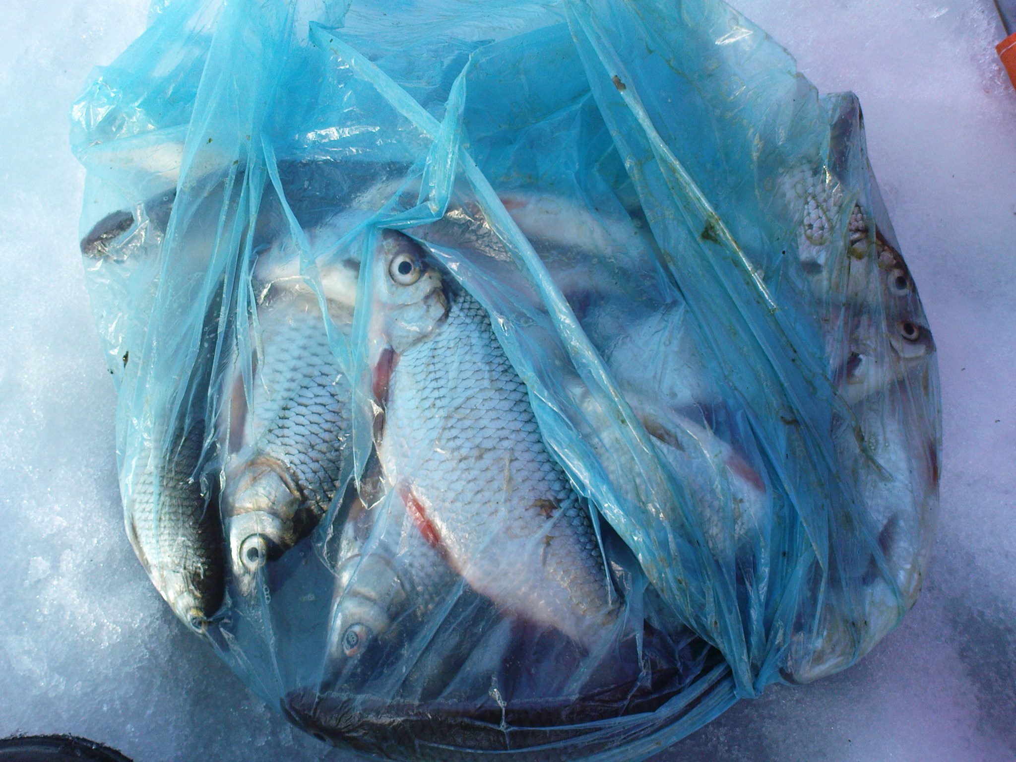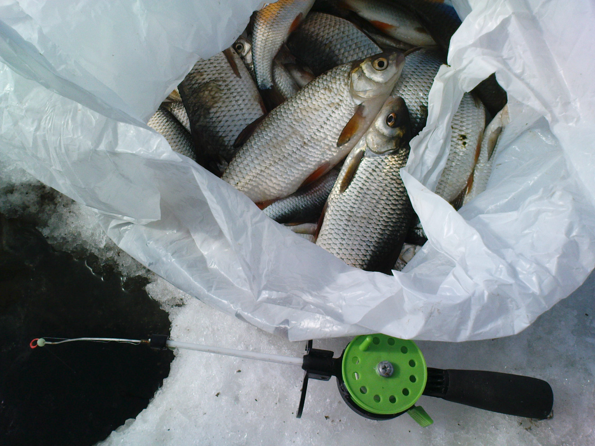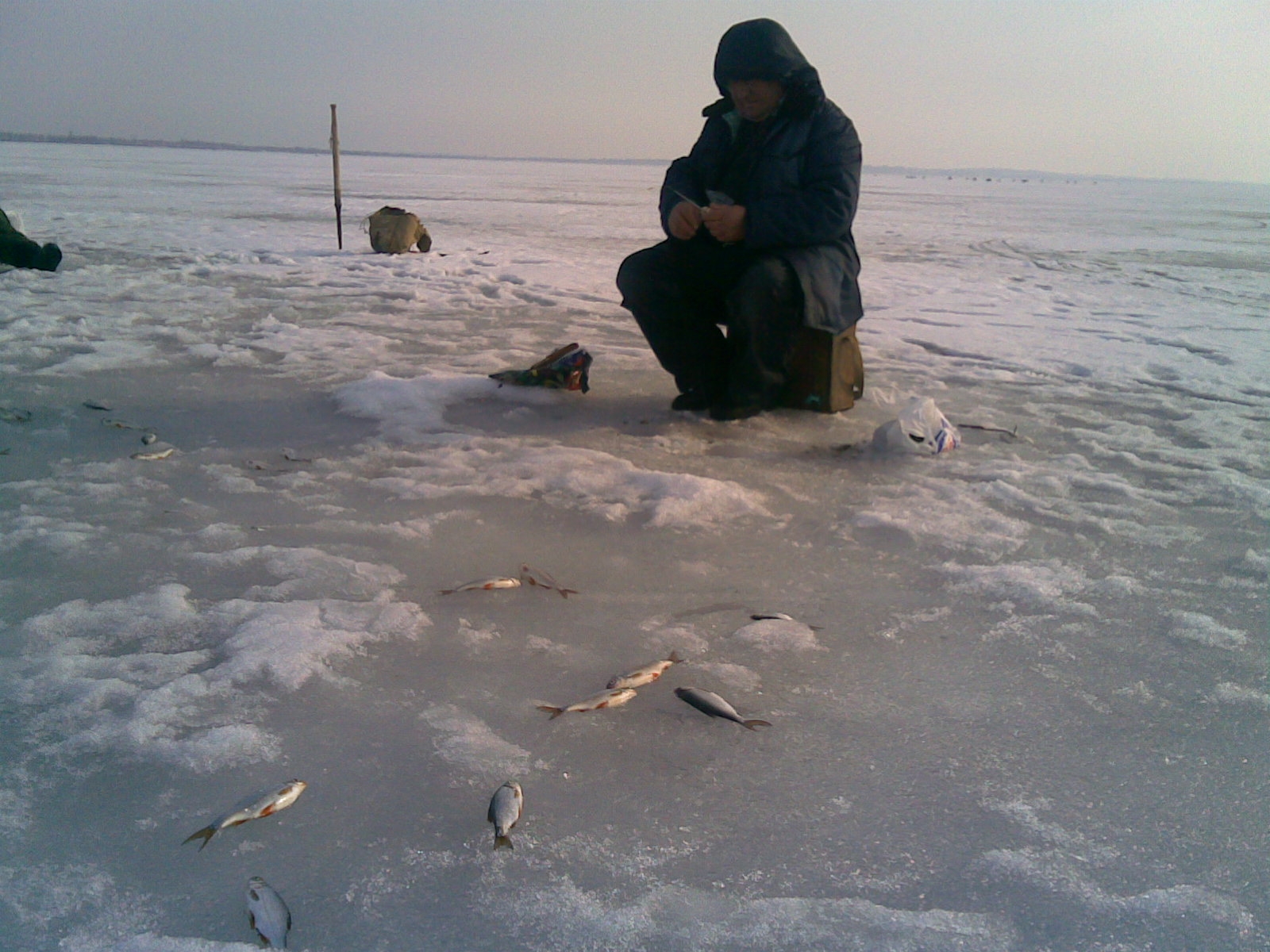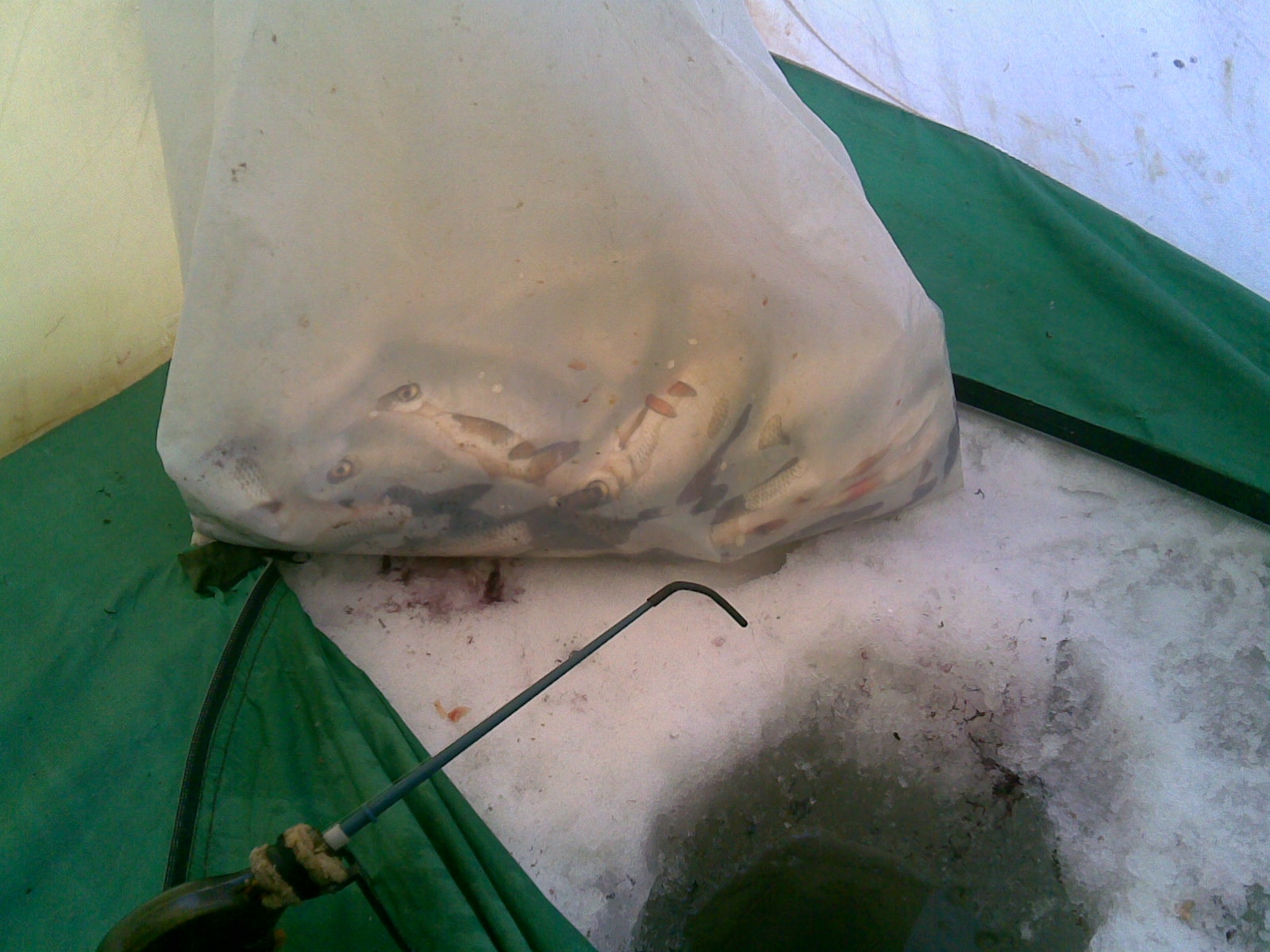 От себя добавлю ,что сидели на лунках местных рыбаков.Пришлось немного пообщаться на предмет : "где чьи лунки",но все обошлось благополучно :)Клевало действительно оооочень нежно,помимо "красного" у меня неплохо поклевывало на обычный хлебушек из "тормозка".У меня получилось 3 кг,почти все поймал после 11-00.Немного статистики,т.к. фото не делал: