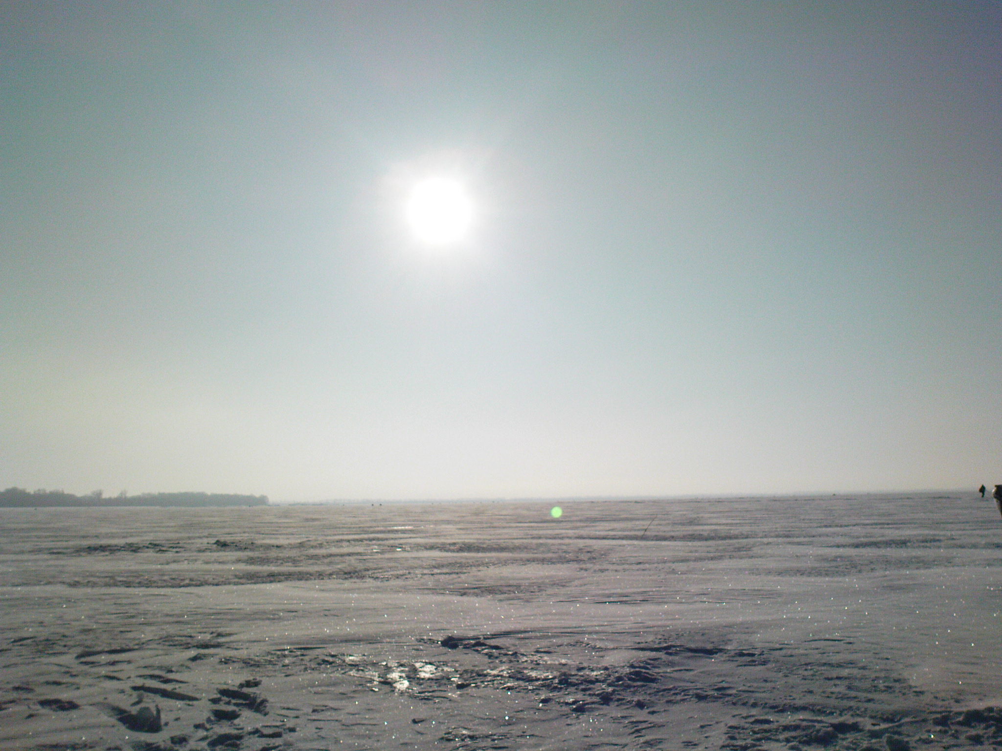 Отпишусь и я по этому водоему за сегодня.Ходили от стоянки машин влево за трещину,нащупали неплохую глубину-7.3 метра.Сели.Скажу предисловие,не очень радовался сегодняшней поездке по прогнозам предыдущих рыбалок.Так оно и получилось,активности у плотвы не было,погода-лучше загорать,чем сидеть над лункой в течении 10 часов.Изредка подошедшая плотва поклевками"аля улю лови гусей а не нас"до такой степени раздражала,что подсечки делал уже наверняка.Вообщем даже чистый мотылек в размере 4-5 шт на мормышке не особо привлекал ее.Поймано 1.250кг.плотвички(см. фото)ну а уж отдохнули то как,прям слов нет.Весна уже точно пришла,что сегодня и было замечено уж очень сильными впечетлениями.Это пара лебедей пролетевшая над нами,клины гусей в красивом полете и постоянные трели жаворонка,может ошибаюсь,но помоему он,да и обратный поход уже по воде с снегом говорит о том,что весна уже рядом-вот она!!!