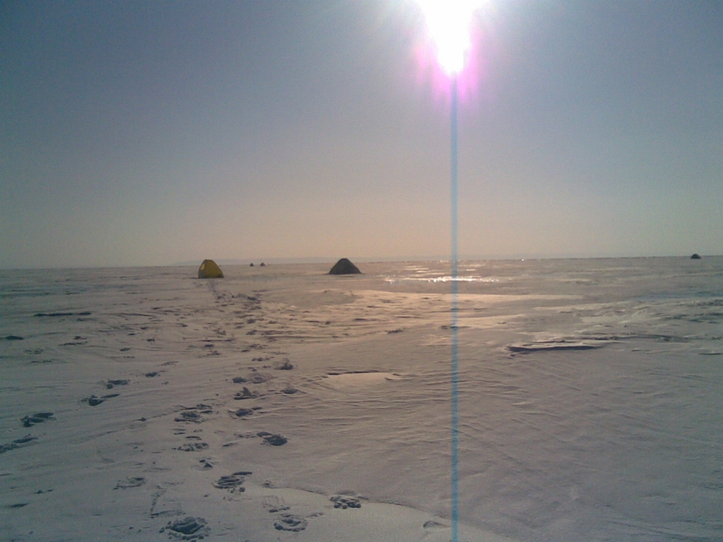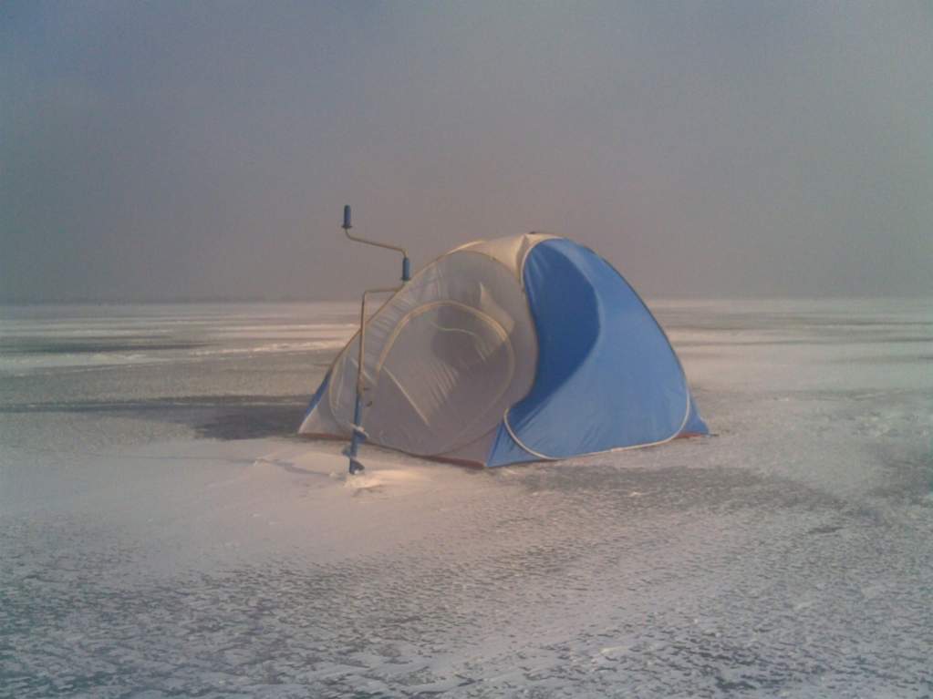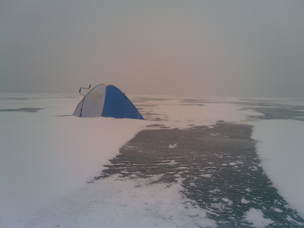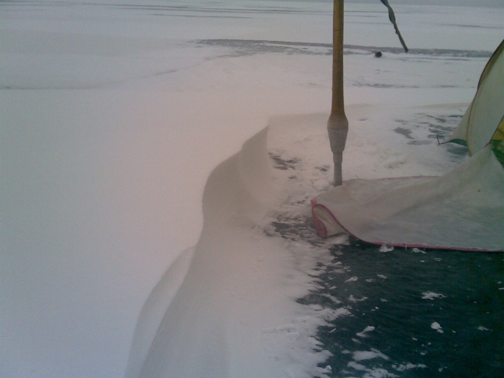 По эхолоту 10,8 м. Рыбка есть, но небольшая. Становимся кучно. Порывы ветра напрягают. Прячусь в палатку, с надежной никуда не выходить. Клева почти нет. С палатки не выхожу даже пос..ть, терплю. Меняю наживки, кормлю. Как на черных камнях, клев начинается после 14-00. Только на опарыш. Ловлю на одну удочку. Норма выловлена, тарань вся крупная. Сборы и обратная дорога как из кинохроники о Северном полюсе. Всем удачи!!!!!