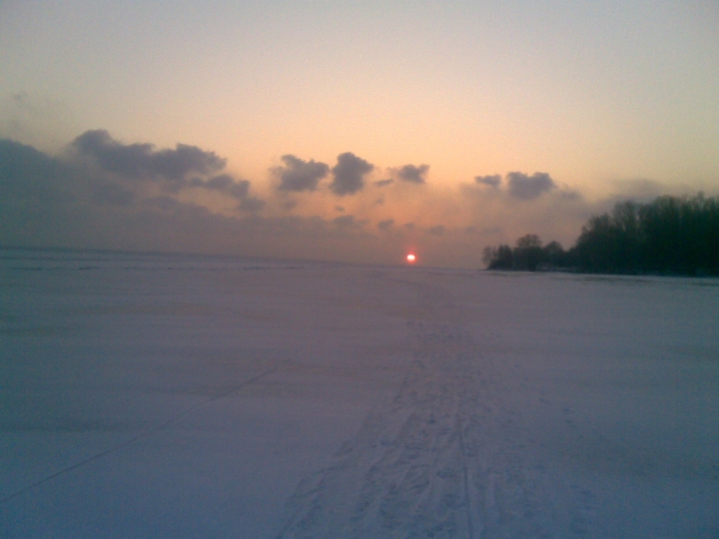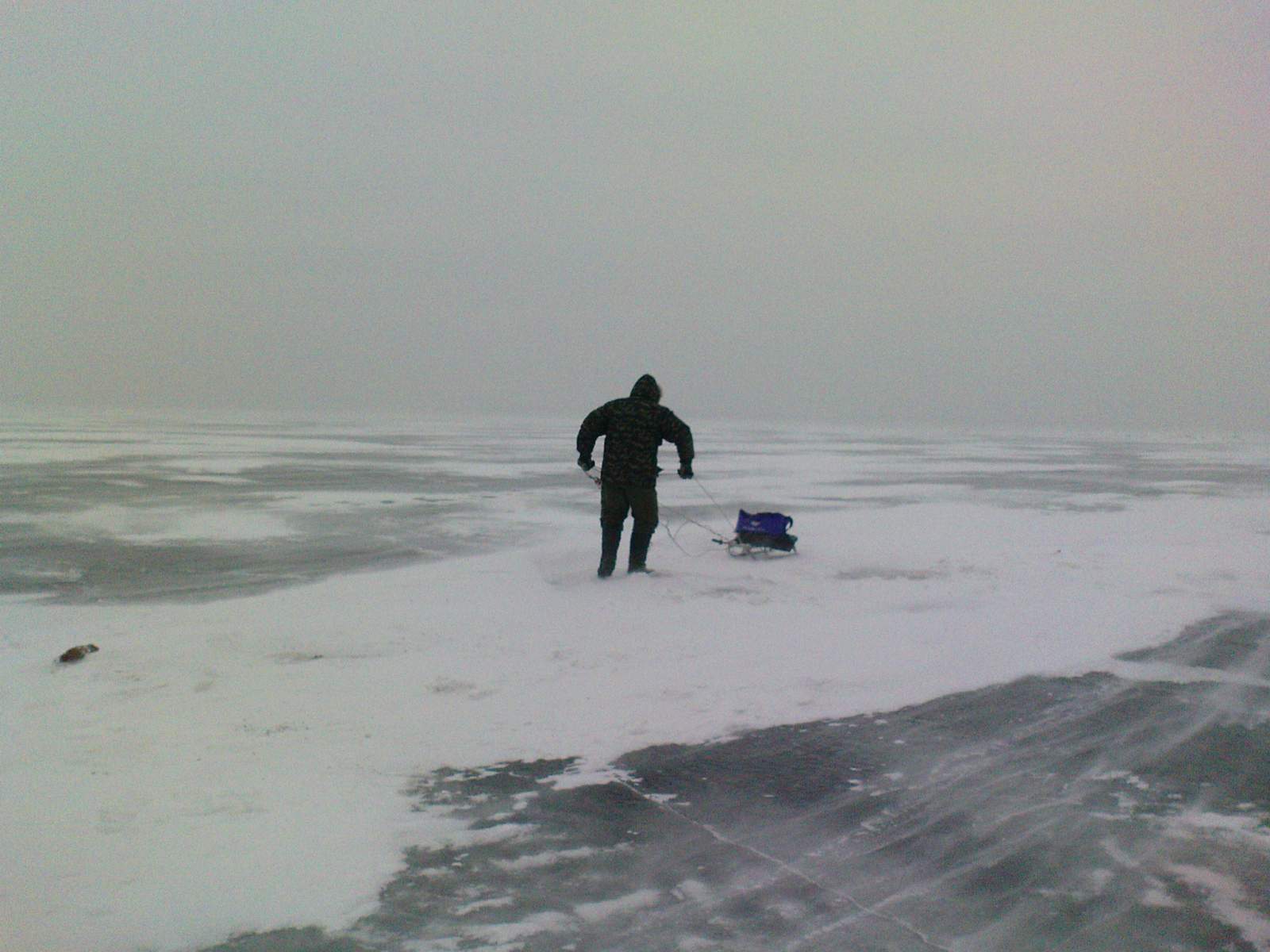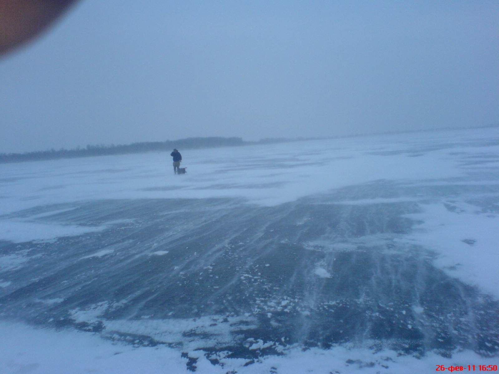 В субботу стартуем на Недогарки. Выезжаем не рано в 7 утра. Идем в район ловли Сереги Карпова. Но т.к. ДжэПэЭс тока у меня, приходим ориентировочно. Идти легко… ветер в спину. Испытал новую заточку ножей. Спасибо Сереге (Матросу) – в лед, как в масло!