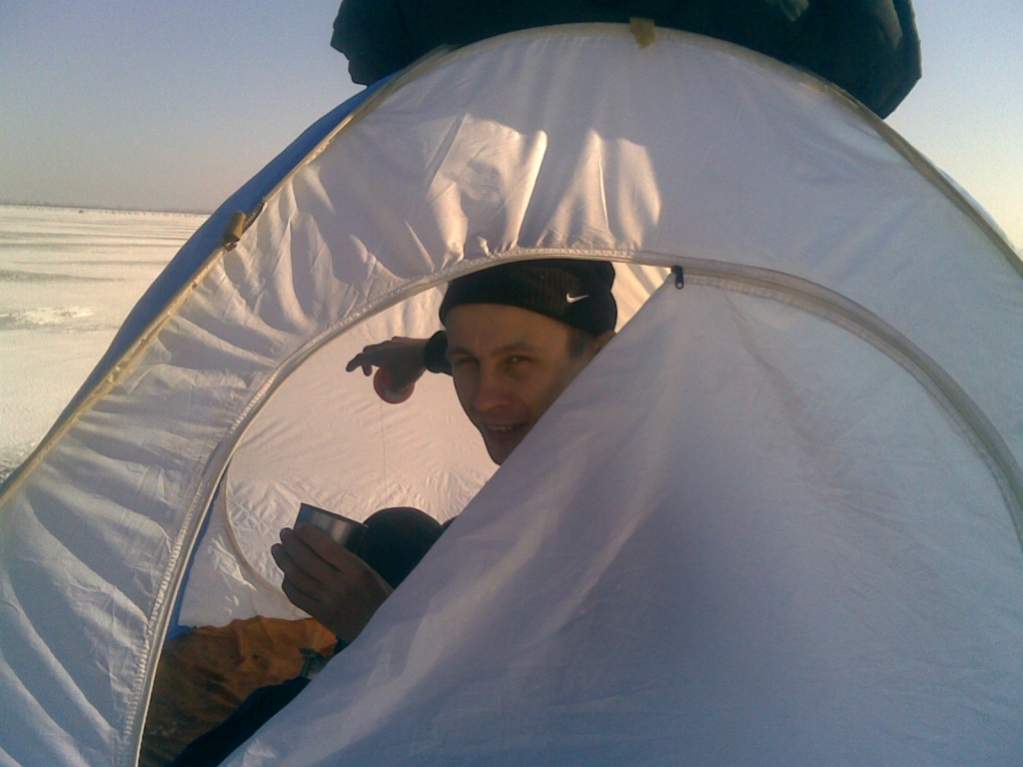 Палатки поставили с горем пополам.У них палатки 2на 2 слажует ветром ,у одного палатка без дна улетела в сторону Недогарок,даже и не пытались за ней бежать.Рыба клевать:пардон: не хотела вообще ,что мы только не предлагали.
