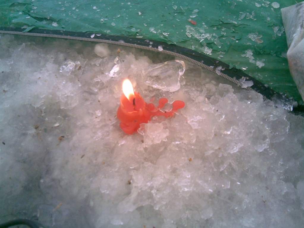 Так вот рыбалка в с. Недогарки состоялась,как назло первый автобус сломался...вторым до села,потом до лунок и того в 9.30 только сели.Пока подкорм,пока подошла,тоесть в пол 11 начала расклевываться плотвичка и неплохих размеров.Начал пробовать с мотыля,а потом перешел на "бутерброд"с опарышем.Брала...Потом мотыль вообще исключил,брала...чем больше опарыша чем больше рыбка.Вот так и сидел при свече...романтично???Да не тот случай!!!Для тепла,ветерок присутствовал неплохой и руки немного подмерзали даже в палатке.Но вроде после 12 притихло и комфорт сразу же пошел по всему телу,может 50 гр.коньячку помогли?Может быть...В итоге поймано 4.5 кг.рыбки,свежий морозный воздух и усталость при выходе,ветер в лицо+снег-удовольствие...шутка конечно,а так все было идеально.