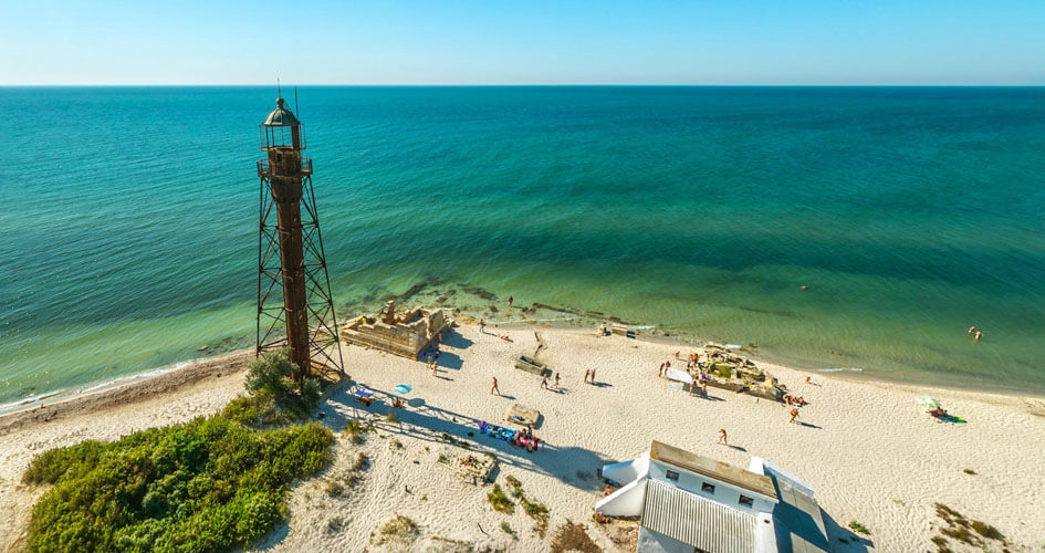 Ещё одно интересное место находится на юге Херсонской области у н.п. Лазурное - это остров Джарылгач. Это самый крупный остров на территории Украины по площади, и считается вторым по длине (после Тендеровской косы). Его площадь составляет 62 км. кв., протяженность – 42 км. С севера остров Джарылгач омывается Каркинистским заливом, с юга – Джарылгачским.