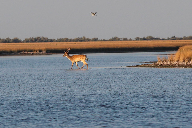 В свое время остров Джарылгач входил в состав биосферного заповедника Аскания-Нова. Джарылгацкий национальный природный парк был создан в 2009 году. Дикие кабаны, лошади, лани, муфлоны – это постоянные обитатели острова, а оленей, ланей, муфлонов на Джарылгач завезли из Аскании еще в 19 веке.. Много зайцев и лис. В зарослях маслин прячутся олени, бараны пасутся большими стадами, а муфлоны могут скрываться в прибрежных зарослях тростника и рогоза. Они неплохо здесь акклиматизировались и размножились: пищи достаточно (остров весь покрыт травой), естественных врагов, кроме человека, нет. И с 2009 года здесь запрещена любая охота и любой отстрел животных, даже санитарный. В море водится много рыбы: кефаль, ставрида, бычки, камбала, а главное – скаты. Много промышленных видов: сельдь, шпрот, килька. В изобилии крабы, мидии, креветки, устрицы, рапаны. Если повезет, можно увидеть дельфинов, они часто подплывают достаточно близко к берегу.