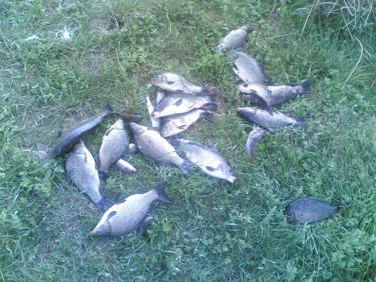 ЗЫ: За сутки на ставках было машин до десяти, все сидели или с ночевкой, или все утро до обеда, по разведданным сторожа в уловах карпики по несколько штук и карпы по 3-5 кило.