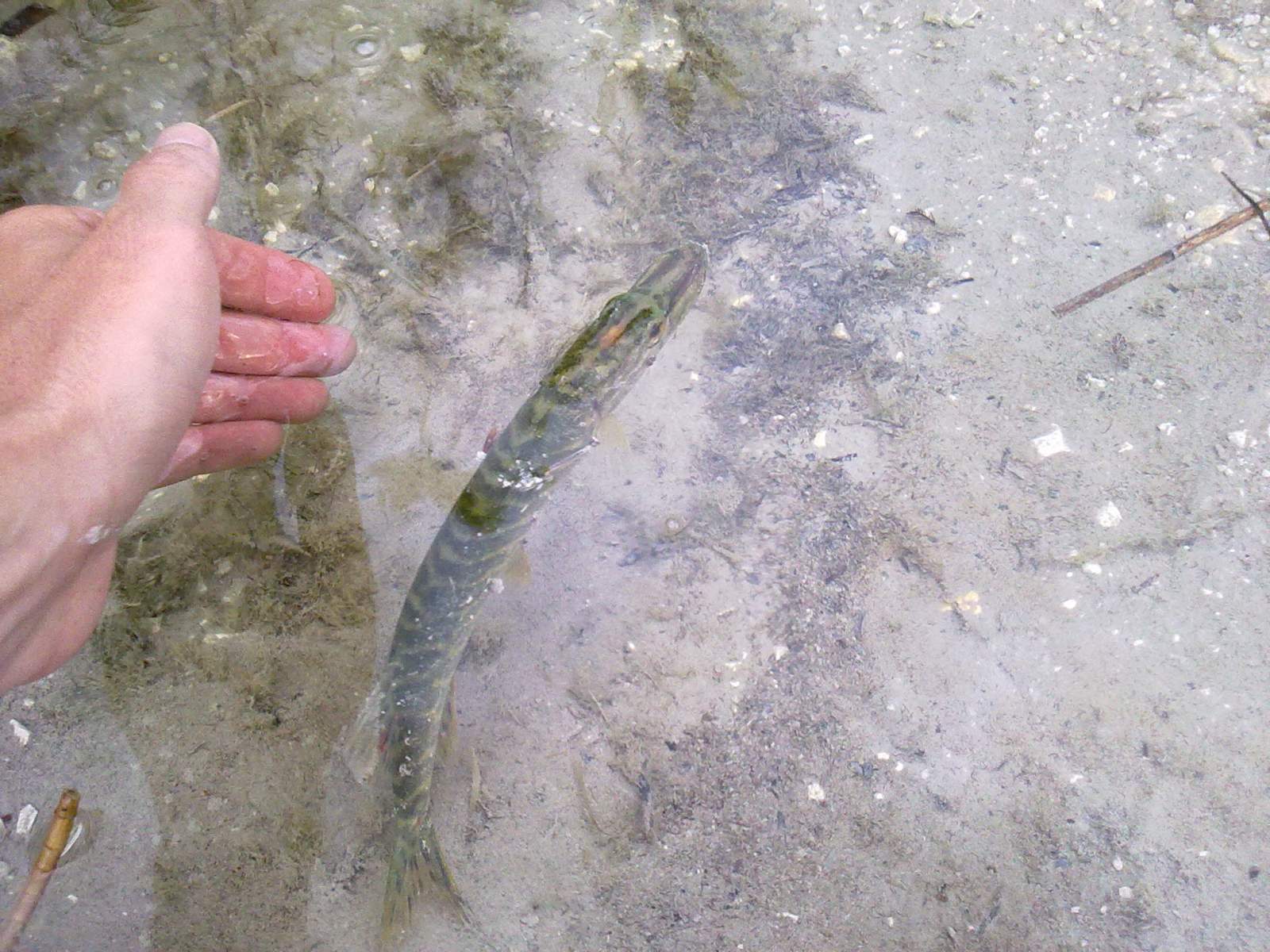 Вода прозора - видно дно і рибу. В одному місці на косі на дні лежала дохла щука (на вигляд біля 1 кг. - остання фотка). Мабуть вмерла не своєю смертю - шкода її.