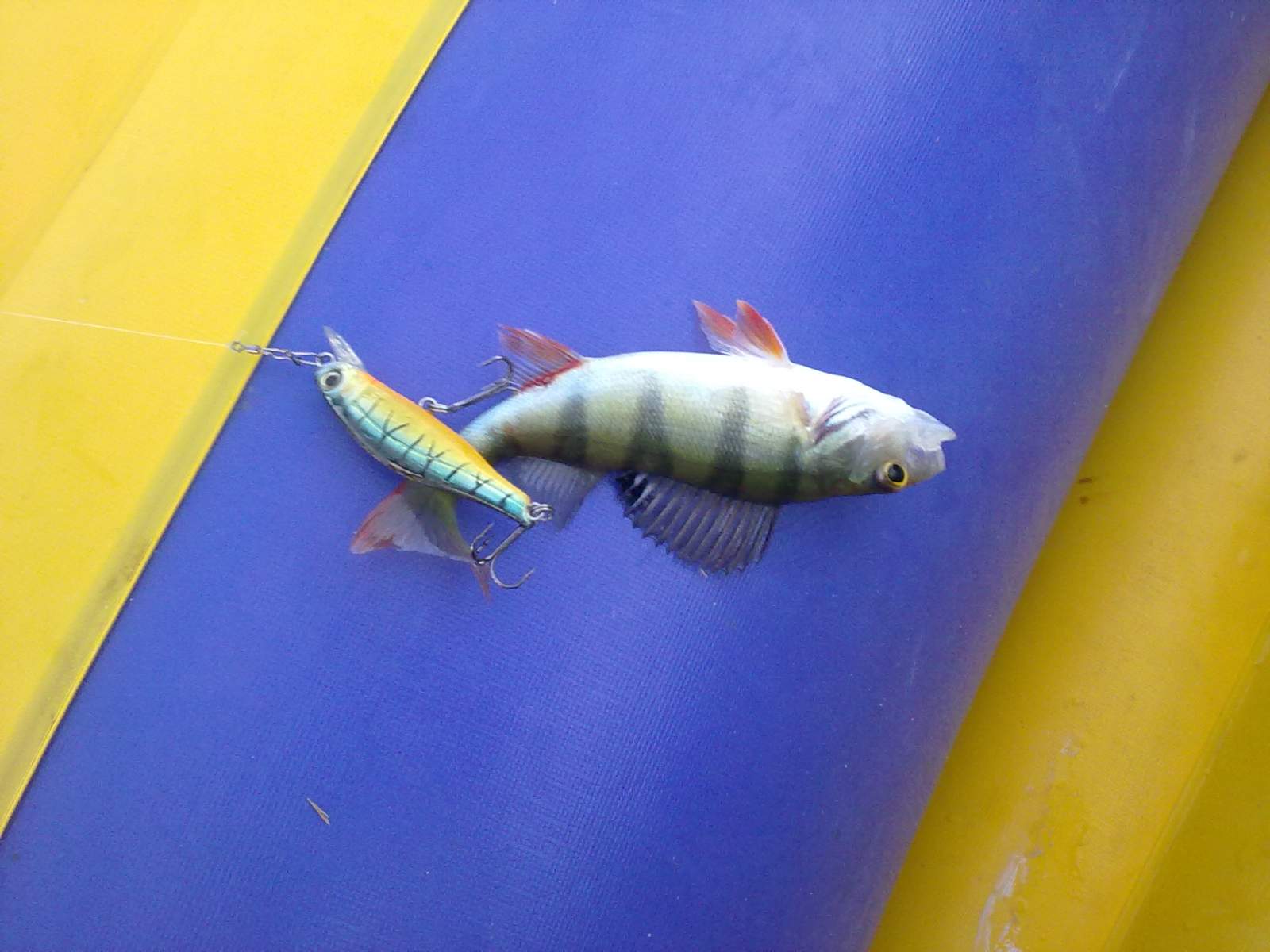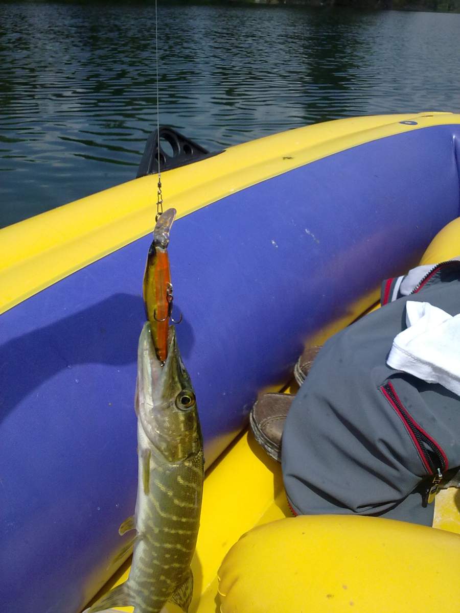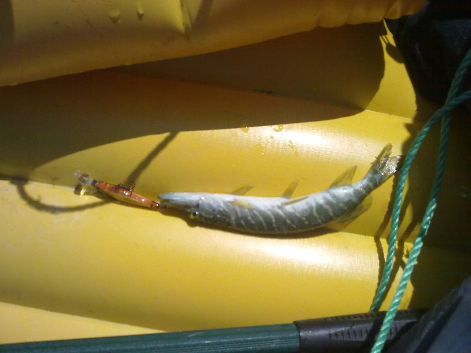 Нарешті вдалося поїхати в кар"єр з лодкою. Хоч і китайський - але все ж таки плавзасіб. В 5-30 на воді. Перші два закидання принесли два окунця на вертушку (мепс №2 біла з опушкою). Далі пів години експеременти з вибором місця та зміною приманок (хочеться все-таки зловити щуку, а не кульок окунів). Перша взяла на YO-ZURI 3D Minnow R725 в кольорі GBL (Gold/Black). На воблер час від часу підсідали окунята, а тому продовжував експеременти із зміною воблерів, "силікону" та "заліза". На той же самий мепс №2 спокусилась наступна щука (обидві вагою по 700-900 гр.).