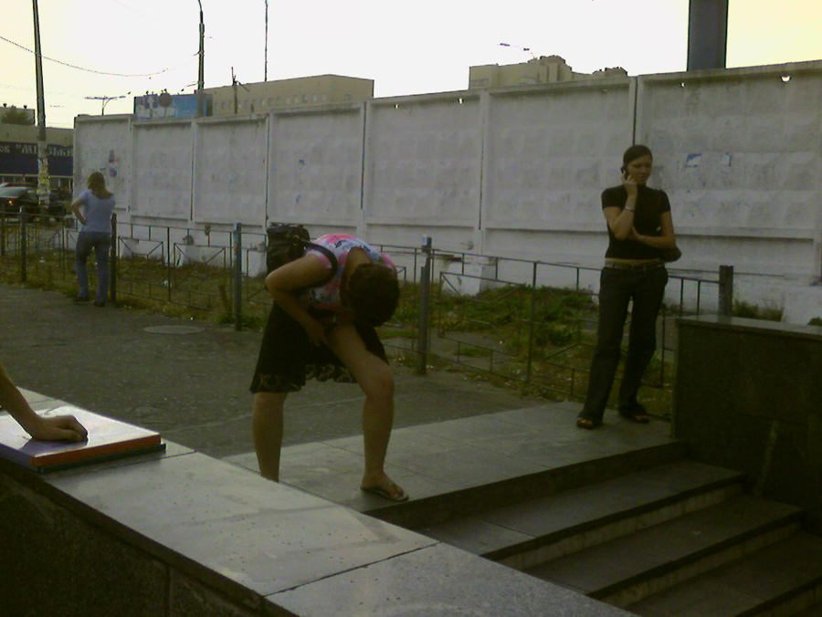 Место действия - метро "Минская", Трое мужиков, наблюдавших это действие, продолжавшиеся около 2-х минут, никак не могли понять: - Что эта девушка "там" ищет?:фигасе:
