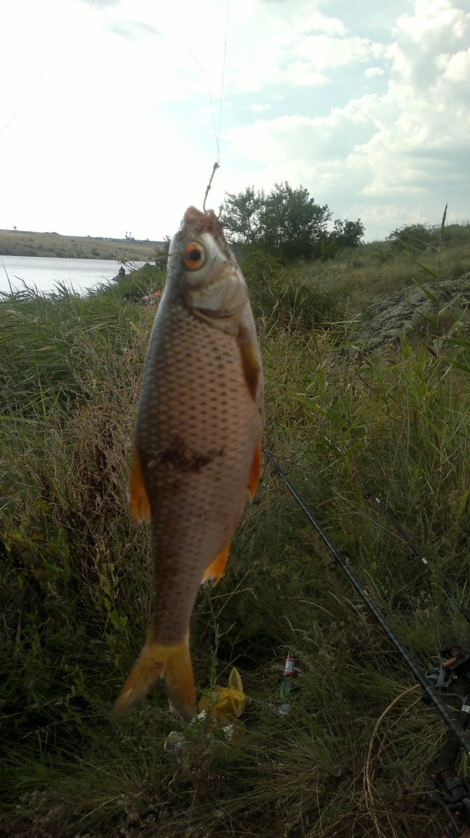 с пятницы на субботу снова посетили водоем .хотели в район острова но так как перспекиврыбместа там ограничены решили не рисковать и проехали немного дальше .стали рыбачить между островом и новоразановкой.может глубины а может жара но в прошлый раз клев был интенсивнее, а в улове в основном были виздесущие козлики ,плотва если и радовала то временами на поплавчанки.хищник наоборот свою активность не убавил окунь утром рвал и метал .изменились разценки берег 30 лодка 50 гривней.в суботу кратковременый шторм протрубил шабаш проиятно уставшие рванули подомам:ok: