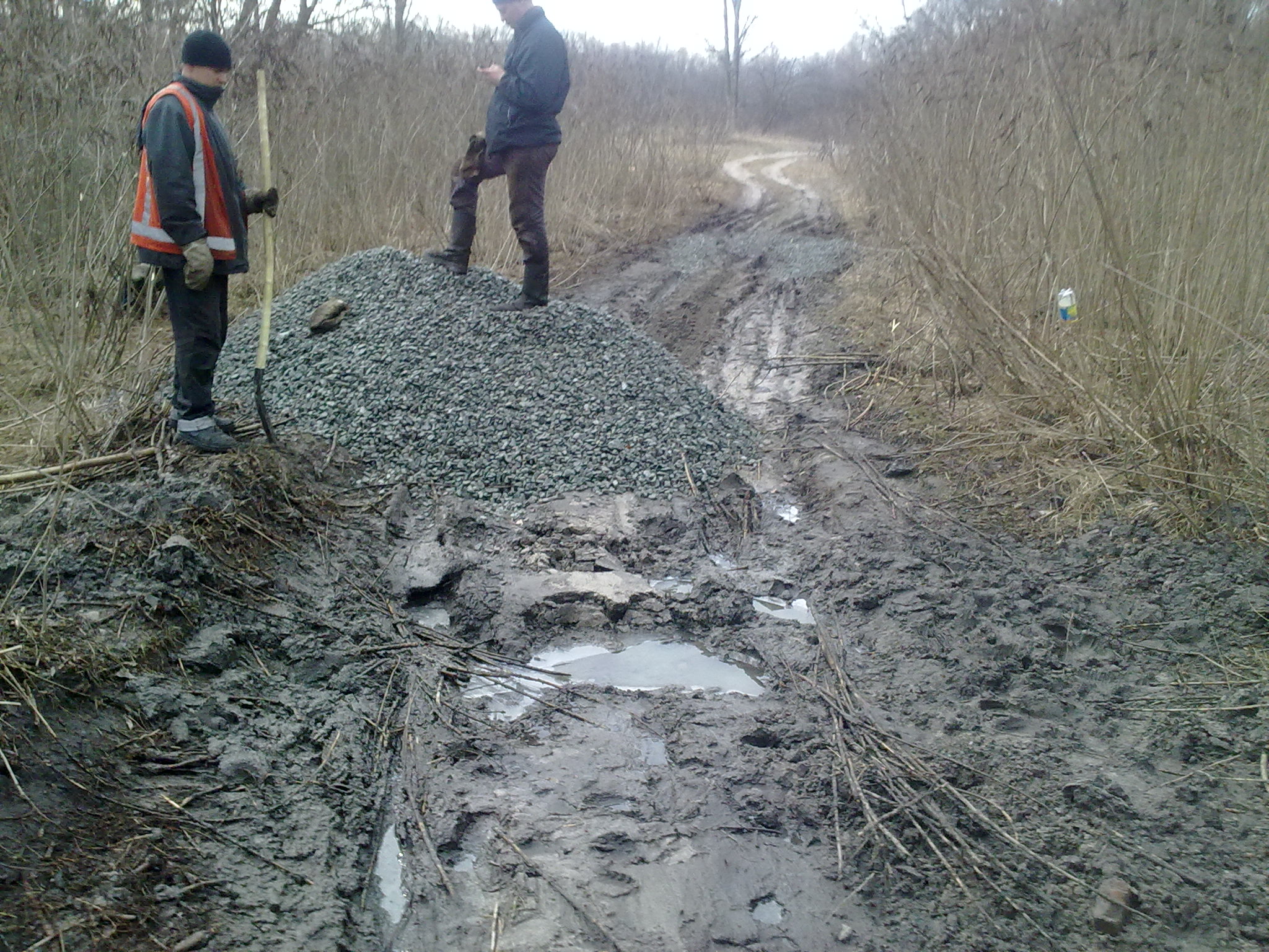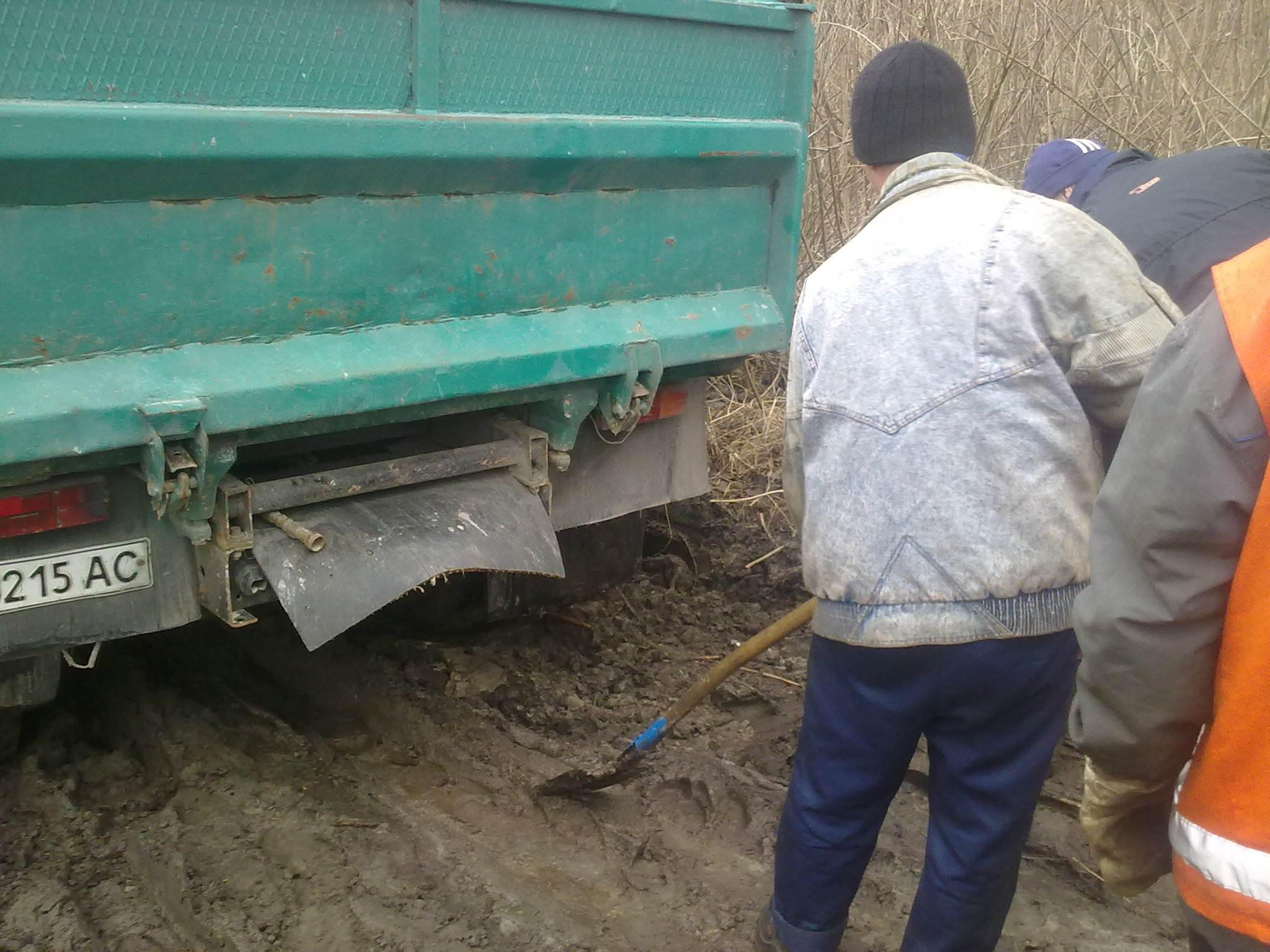 Привет чесной компании!Господа кременчугские рыболовы ваши деньги не потрачены зря,сегодня наконец-то получилось проскочить в Чиколовку на "Грушу" и привезти щебня для ремонта дороги. Хорошо что приехал не один,взял троих крепких парней на работе и четыре лопаты(одна моя ),до базы отдыха доехали без проблем.Там я развернул ЗИЛа и задом заехал к злополучной яме.Но до ямы я не доехал метров 10 и ЗИЛ сел задним мостом.Толкали долго....... :buee: Вытолкали конечно,но сделали еще одну яму Пришлось внепланово засыпать ее,ну и потом уже остальным щебнем засыпали основную яму и подходы к ней. Потрудились на славу,но перед выездом на поляну еще осталась бяка!По хорошему еще бы пару машин и можно было бы говорить о качественном ремонте всей дороги,а так пока только частично.Кстати у нас в стране в основом так дороги и делают Фото с места событий: