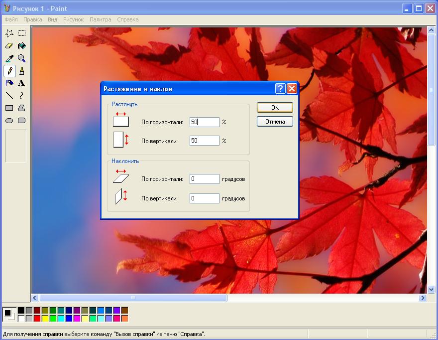 3.Меняем значения По горизонтали и По вертикали, допустим до 50%.