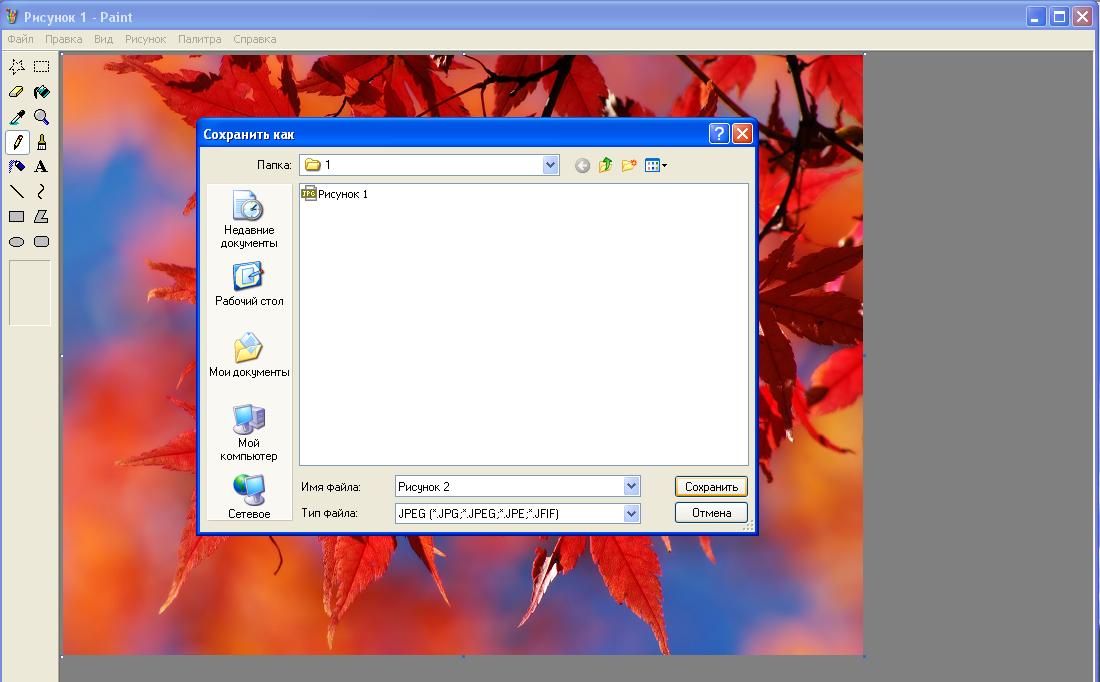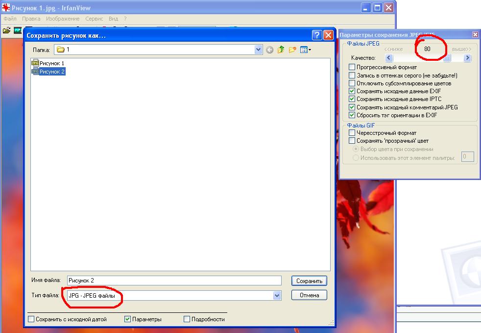 8.Сохраняем файл с расширением JPEG. (качество по умолчанию 80)