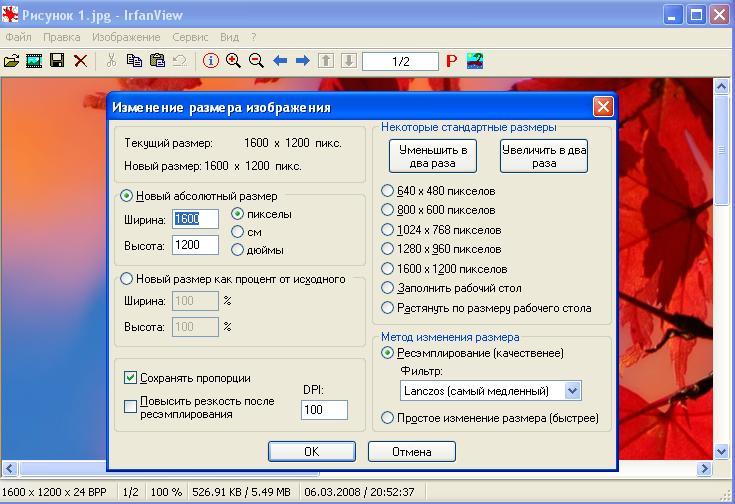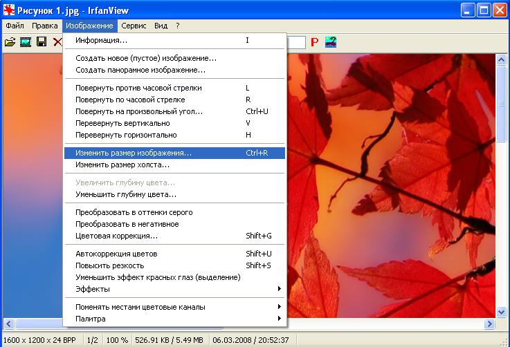 6.В программе IrfanView изменить размер можно зайдя в меню Изображение-Изменить размер изображения или нажав сочетание клавиш Ctrl+R