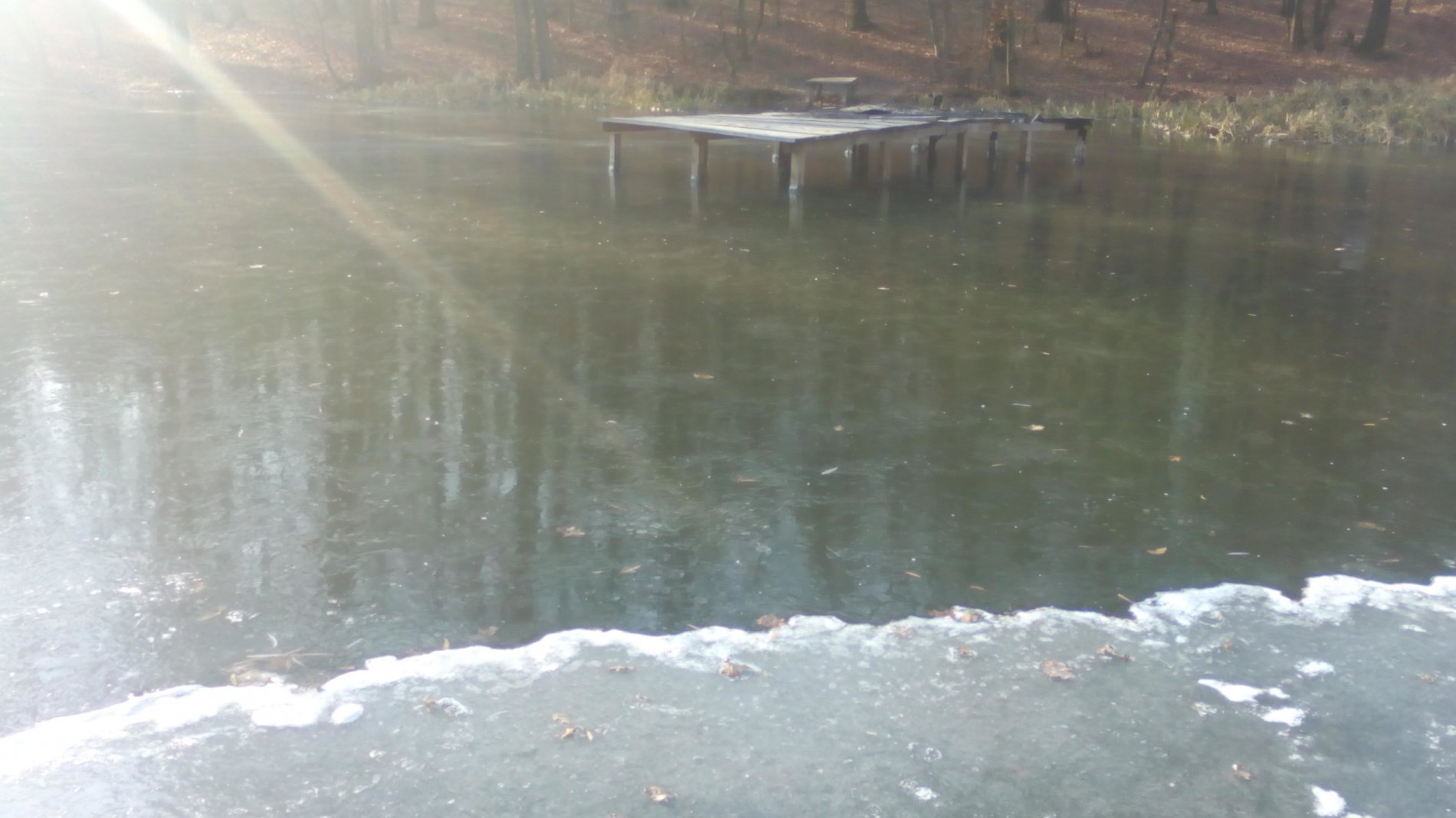Игорь 1, Я думал что впереди температура будет плюсовая и дожди, а значит получится ещё выехать на рыбалку по открытой воде. Оказывается что последняя рыбалка была закрытием сезона. Даже если будет потепление, вода на ставках на откроется, будет вода по верху льда и потом снова замёрзнет. Двойной лёд, что для рыбы будет чревато последствием. В пробитые лунки она будет заходить в прослойку между двух льдов и там погибать. Сейчас пришёл с ( копанки ), в вершине береговая зона лёд 4 см. я прыгал на нём свободно. Дальше по ставку 2 и 3 см, тонкий около 1 см. Есть пару промоин небольших и всё. Они замёрзнут за эту ночь. Теперь уже буду ждать крепкого льда и вперёд пингвинить