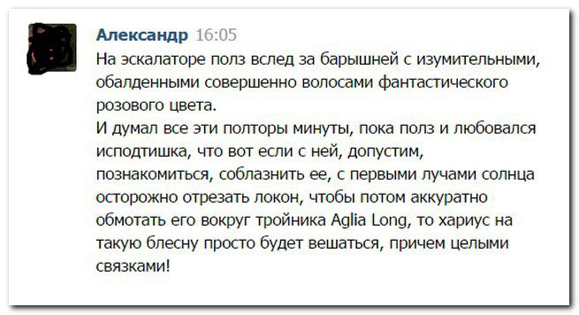 — Алло! Владимир Владимирович, добрый день! Я мать-одиночка, у меня двое маленьких сыновей. Что мне ждать от государства? — Как минимум, две повестки в армию! Одного мужика арестовали за незаконную вырубку леса. И приговорили к пяти годам законной вырубки леса. Маленький мальчик носится по квартире. Сбрасывает книжки с буфета, раскидывает одежду, опрокидывает стулья. Прибегает нянечка и спрашивает: — Ты что делаешь? — Я играю в игру — В какую? — "Твою мать, где ключи от машины?!!!" Проверяющий на одесском рынке: — У вас есть документы на эту рыбу? — А шо вам надо? Свидетельство о смерти? Перлы учителей и преподавателей. — Пусть вон тот желтый кубик будет для наглядности, синим шариком. — Нарисуем бесконечно малый треугольник. Нет, плохо видно, нарисуем побольше... — Все в ваших интересах: чем быстрее уберете класс, тем быстрее пойдете мыть коридор. — Пропиловый спирт пить нельзя, поэтому его формулу писать не будем. — Запись в дневнике: Пришел на урок физкультуры без трусов. — После Павла 1 на российском престоле женщин больше не было.. — Студент, вы что, действительно такой умный? — Кто, я? — Ну не я же! — Давайте для простоты возьмем матрицу 7-ого порядка. — А сейчас открываем половые органы и внимательно их изучаем! — Девушка в заднем ряду, пересядьте ко мне на переднее место. — Запись в дневнике: Кувыркался без мата. — Спросит вас продавец в магазине формулу Гаусса-Остроградского... А вы ее не знаете! — Возьмите график и крестиками поставите галочки. — Я завтра неожиданно дам вам контрольную. — Танк тихо подкрался, бесшумно лязгая гусеницами. — Повсюду лежали трупы. Кое-где они были еще живы. — Вы мне врете, товарищ студент, но я вам верю. — Летят N самолетов. Нет, N мало — К и оба реактивные... — Итак, мои юные партизаны, начинаю допрос по прошлой теме.