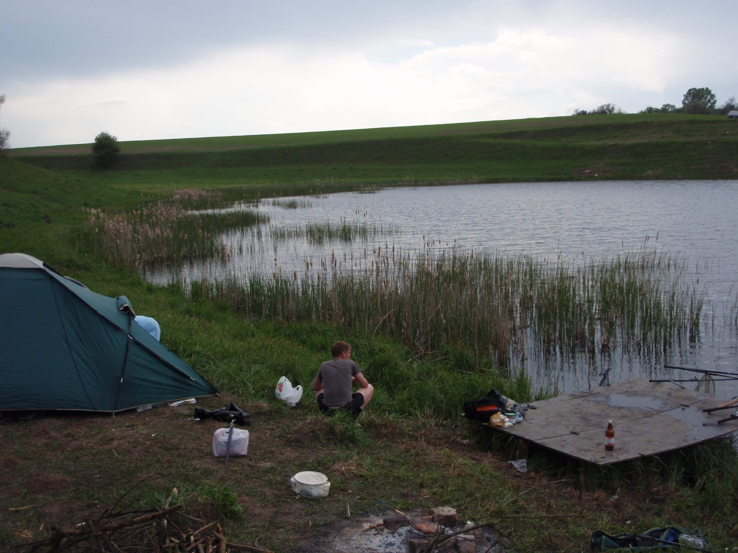 Созвонившись с арендаторами озера - решаем ехать.Приехали утром 9 мая - уехали утром 10 мая. От знака Киев по одесской трассе - 72 км до самого озера. Озера небольшие, разделенные дамбой. Берег порос камышом, много цепы под берегом. Глубина озера 1-1,5 и второго, того что выше, - до 2-ух метров. Место для рыбалки выбирали с условием, что б палатка была под боком, а таких мест - аж 2-3. Объехали озеро с противоположной стороны и разбили лагерь. Дров - валом. Предварительно поговорив с рыбаками и хозяевами, выяснили, что хороший клев был неделю назад, а на данный момент пойманы по 1-2 мелкие (до 400гр) карпики. Закармливаем фишкой зоны и фидеры в воду.... Клев был бешенный, карась с палец обгрызал все, что попадало в воду(червь мастырка, опарыш) На кукурузу - ОП. , но все таки умудрился выхватить 2 карпиковдо 0,5 кг. Оборвав 4 фидерные кормушки пришлось почистить место от камыша. На ночной клев опять поставили кукурузу и свежесваренную картошку, которая утром точно также стояла. За ночь поклевок небыло. Утро поклевок карпа тоже не принесло. Поразило, что не было комаров и мошек ВООБЩЕ!!! Это такой кайф. Итог рыбалки: 2 карпика около 500 гр - запекли в фольге и съели Десятка 3 карасиков до ладошки - крупные отправили в уху, остальные отпущены в озеро. 1 окунек с палец - погиб после извлечения крючка из желудка - отвезли кошке. Выводы. Хорошо:Для таких условий - цена средне рыночная, озеро молодое (2года) - перспективное. Дров - валом. Плохо: Недостаточно оборудованы места , как для платного става, мало мест для палаток, отсутствие туалета. Заросшие берега. P.S. Поразили придурки с оружием, которые били лысок прямо в камышах, по гнездам, козлы...