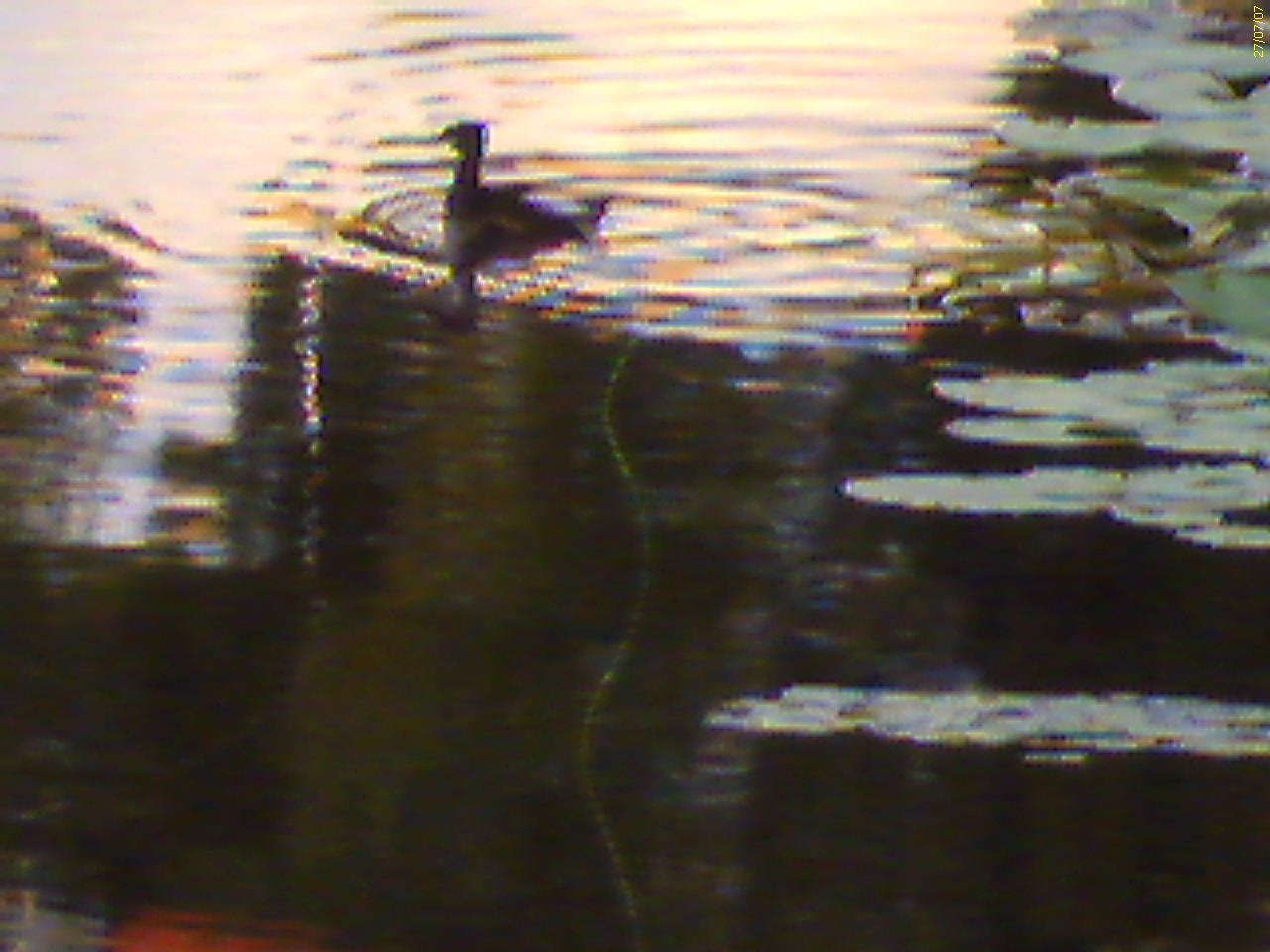 Вот еще решил выложить. Дело было в июле. Тягаю потихоничку рыбку, а в кустах кто-то постоянно трещит. Парочкам думаю в таких густых кущах кувыркаться это садо-мазо поэтому особого внимания не обращаю. И вот эта трещалка вылазит- маленькая замечательная утя. Качество фотки не ахти, мобильник да еще и цифровой зум.