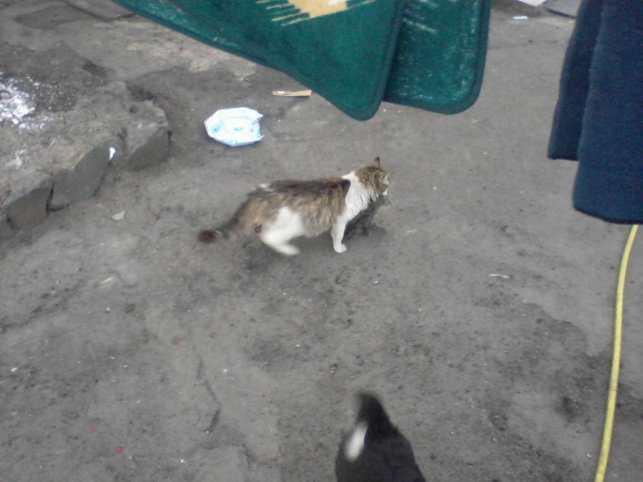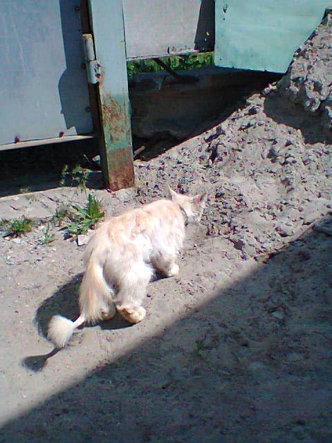 А крохе-ж на месте не сидится, всё время норовит выскочить, а тут и Кнопа крутится... Эх! Видать шось заподозрила, да как выскакивает Машка, да со всех четырёх лап и с одним глазом на Кнопу клепаться. Та аж... А-а-а... Скобыль, скобыль... Тикать под машину. Даже пожрать не вылезла:padstulam: