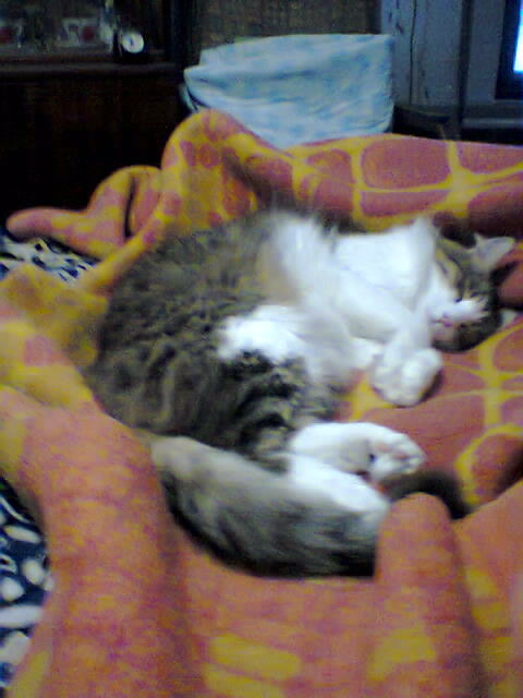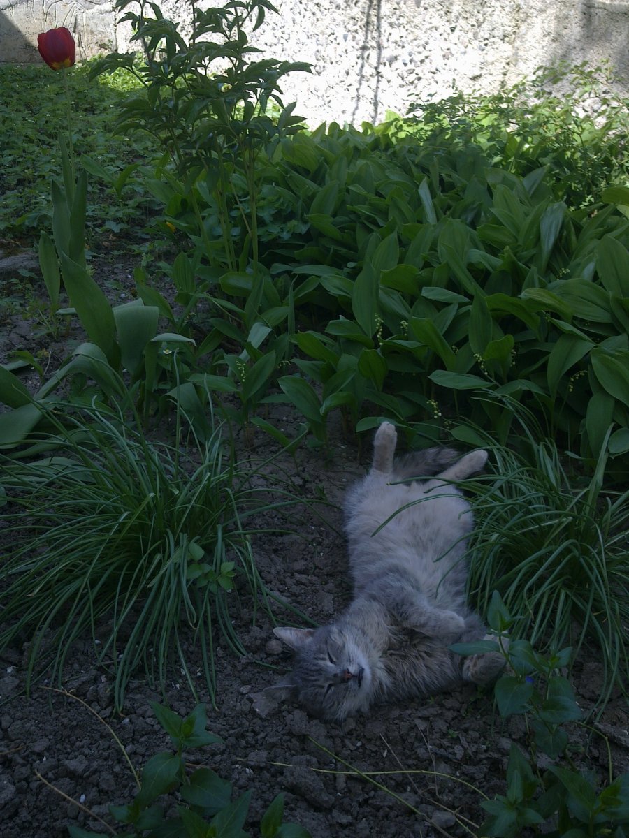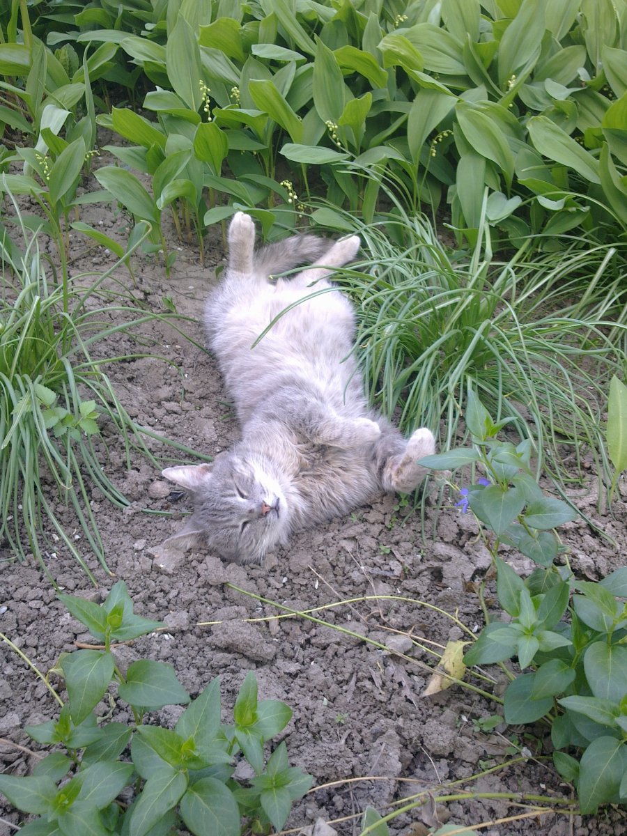 После рыбалки часть улова завожу родителям. Ну и естественно достается Томасу. Вот так он любит отдыхать после вкусного обеда - наевшись до отвала :D