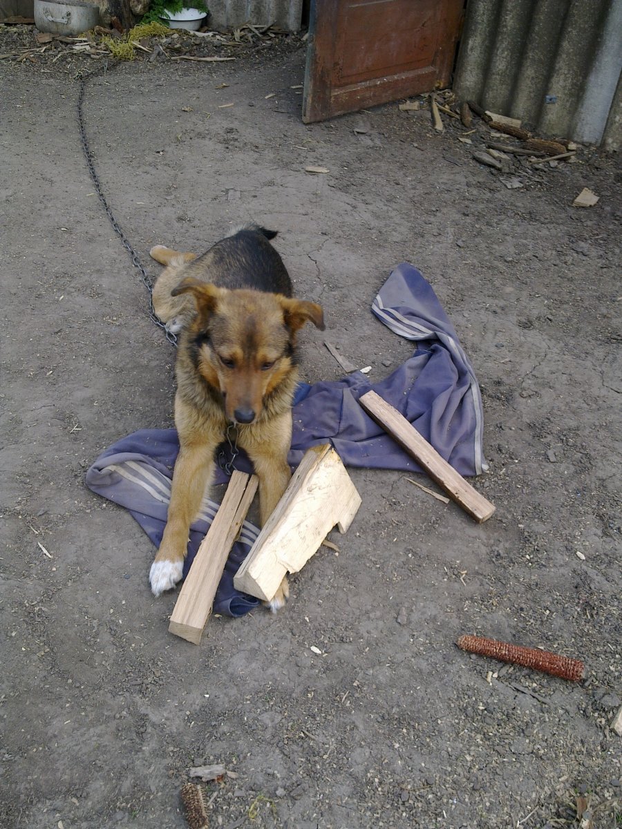 Так получилось что тестя долго небыло дома. Когда привез его домой то увидел что Шарик грызет дрова. Но это еще ничего, вопрос чьи спортивные брюки и жив ли их хозяин? :D