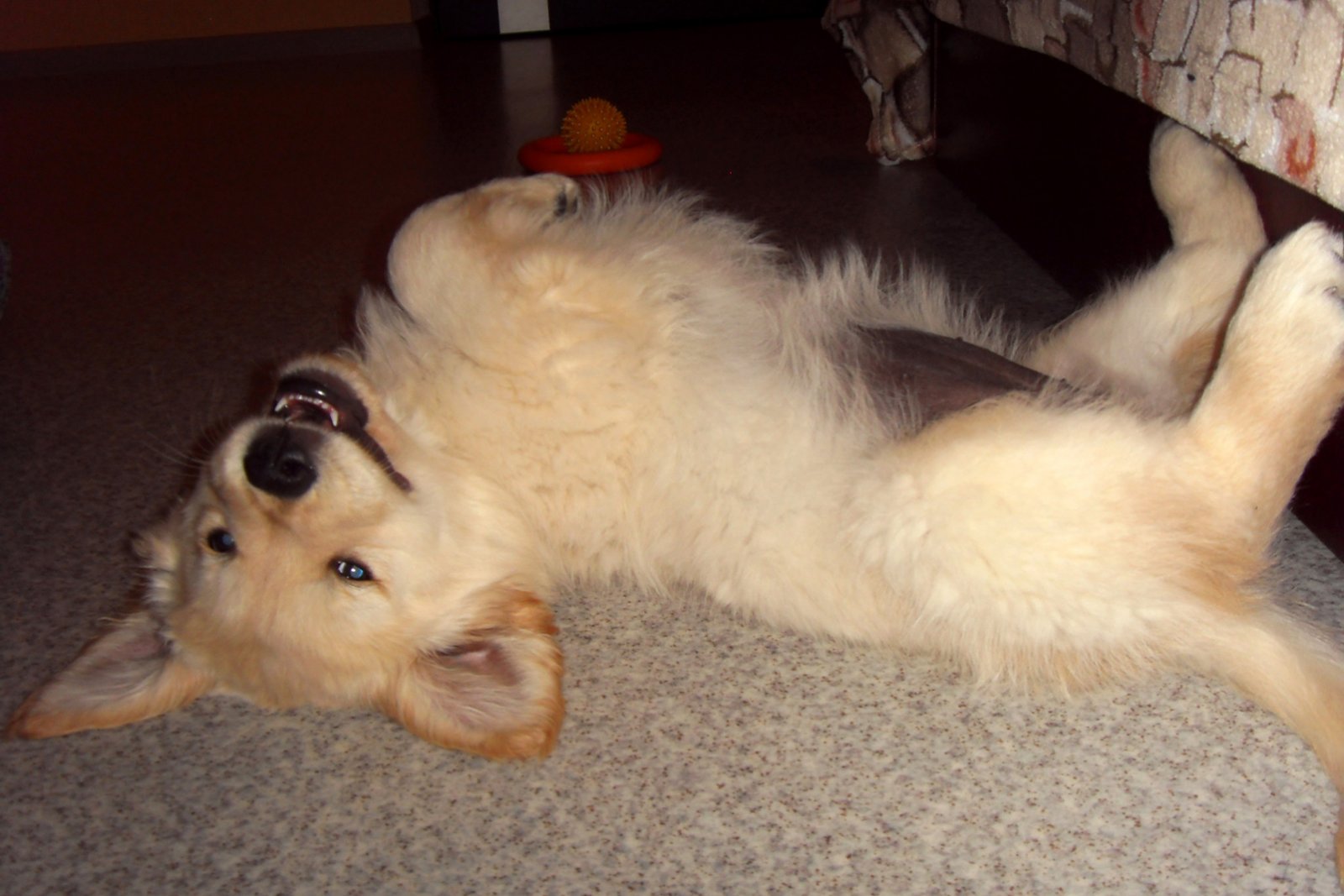 Вернулись из Крыма, забрали от мамы собаку. Я думал, она с ума сойдет от радости, минут 15 просто визжала и прыгала. Утром проснулся от того, что эта зараза забралась к нам в постель и вылизывает мне уши. Причем явно стремясь поскорее лизнуть в глаза.
