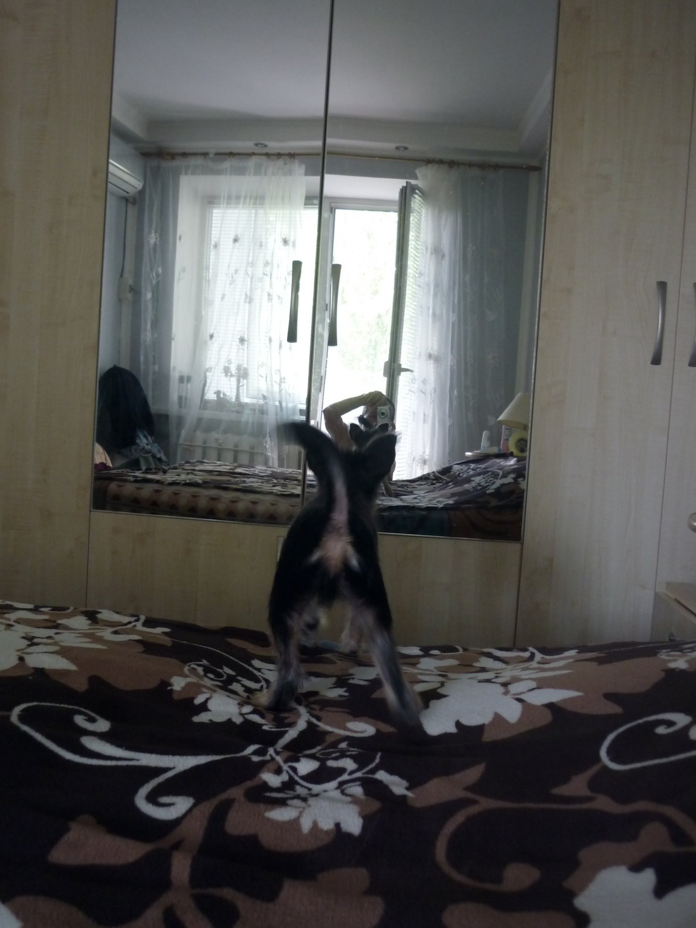 Нам почти 5 месяцев. Вес -2кг. Сегодня увидел собаку в зеркале шкафа-купе, долго фыркал, бросался на соперника. Не знаю понял ли, что это его отражение. Лаять пока не научился.
