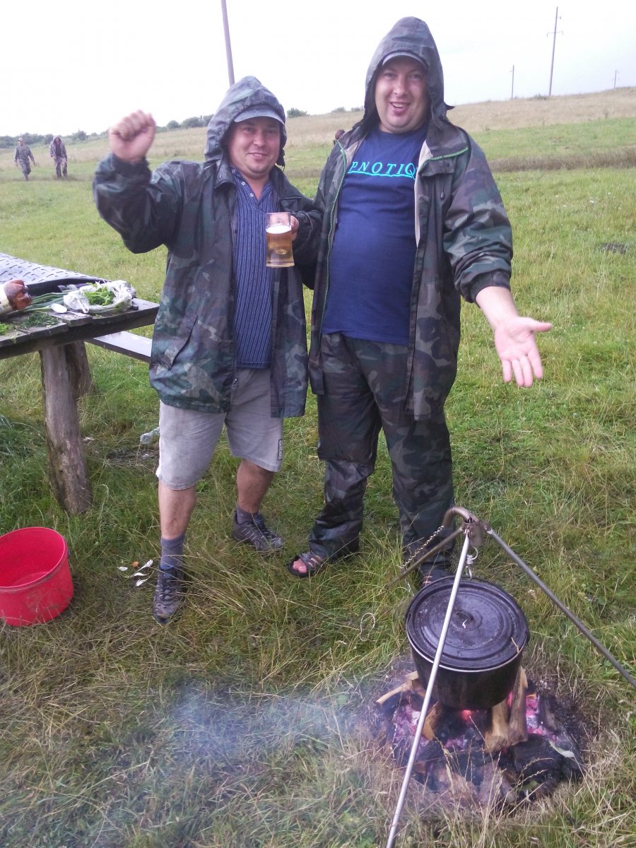 Вже в неділю зранку вирішили скоптити рибку. День рибака вдався, риби ми не навалили, кожному на сковородку, но час провели дуже добре.Всі залишились задоволені. Вибачте за фото з телефона, не було фотоапарату. На фото де всі за столом я також був, не вмістився в обектив.