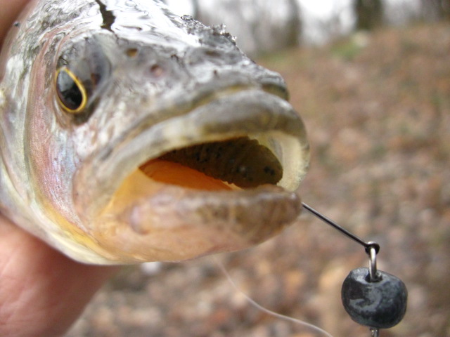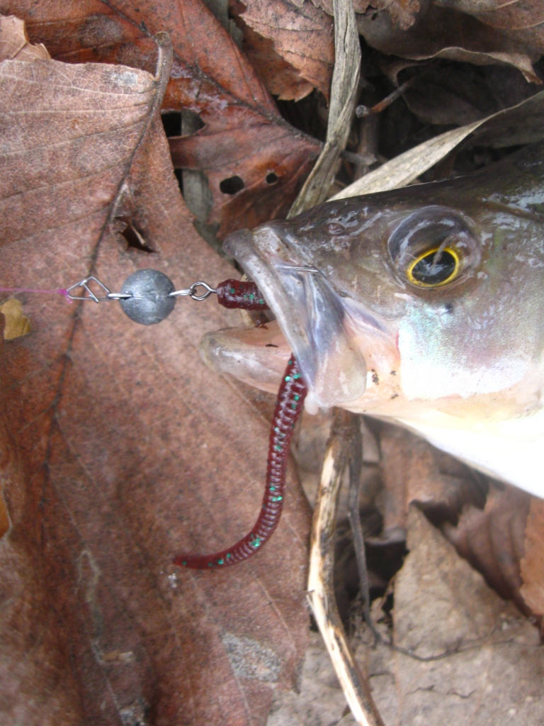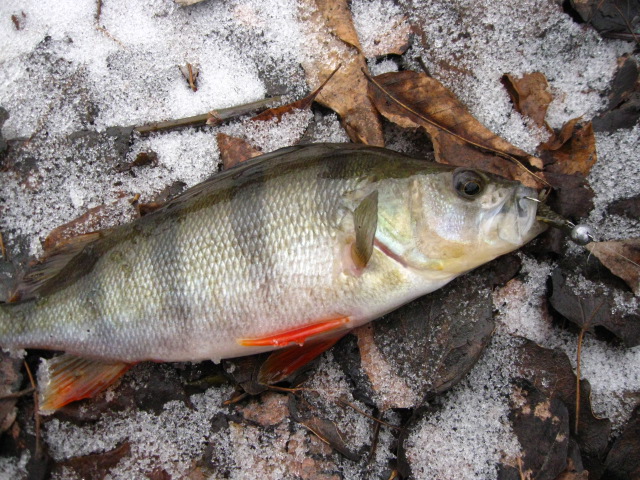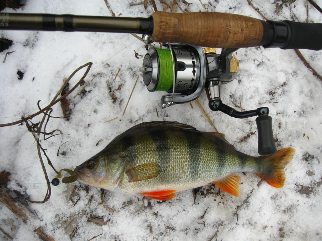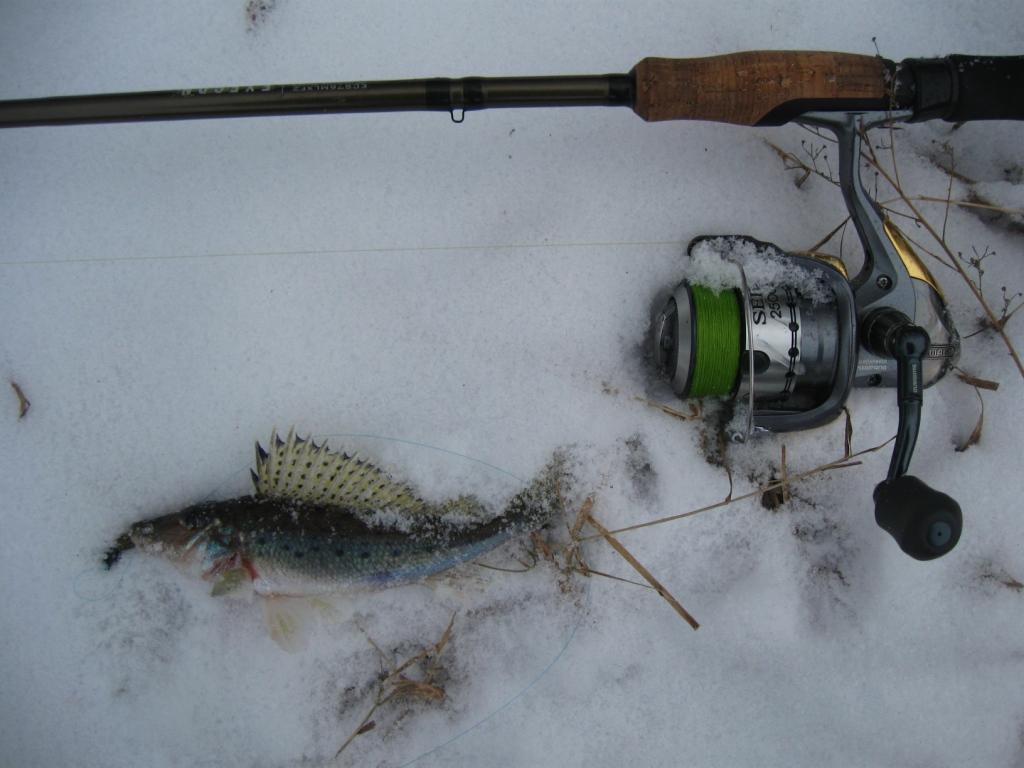 Мне сегодня дедушка мороз принес подарочек в виде окунька. Два сошли, наверное червячка неполностью заглотили. Использовал толстого червяка, напоминающего пиявку от Ямамото. Я его разрезал вдоль, насаживал на офсетник+4гр. чебурашка. На меляке также поклевывал мелкий матросик, но ему приманка нужна поменьше. А погода была замечательная.