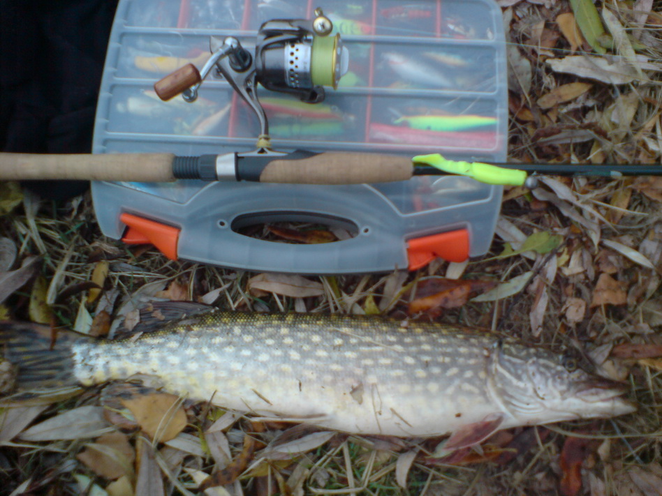 Сегодня и я с кумом прокатились на рыбалку,можно сказать "почти закрытие сезона 2011г".Всю эту неделю ездили практически каждый день,щука брала исключительно на силикон,проводка самая медленная или подброс пауза,двойной подброс пауза,щука попадалась от 1.2кг до 4.9кг как сегодня!Отмечу отменную работу нового своего прута:ST.CROIX LES 86MF2,с учетом моей поездки на ДЕСНУ и в Днепровское,по джигу работали веса от 8гр до 30гр,по воблерам опробовал Орбит 110.Довольно не плохой оказался шнур Sufix perfomanse Braid 0.16мм.П.С.не посмотрел эту тему,а мой мини отчет скорее по Киевской,Черниговской областям.