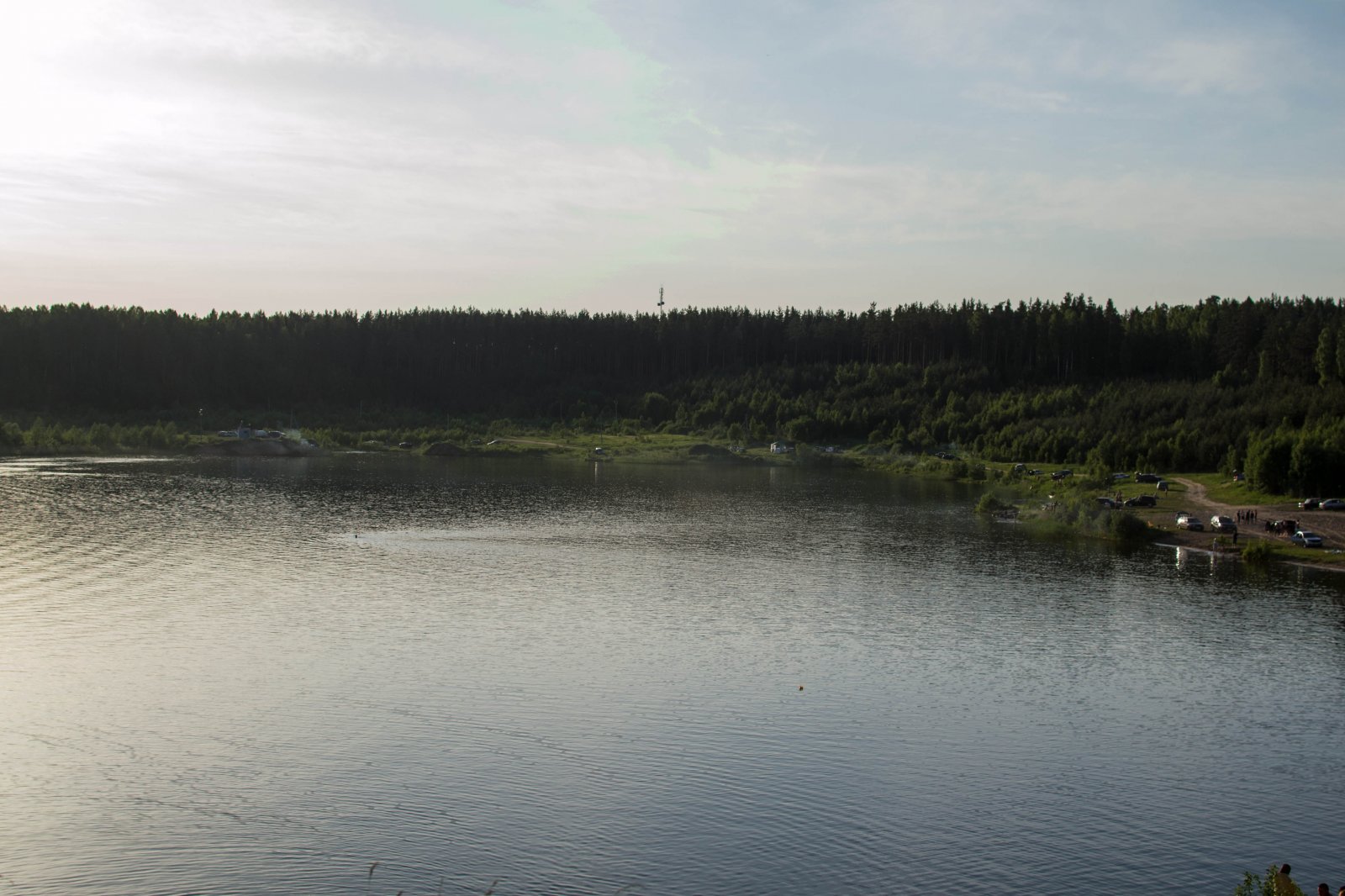 очередная послеобеденная вылазка, на этот раз чуть дальше Шапок, оз.Белое. Покидали спинами, покормили комаров, окушки с палец и мало. Решили уехать на карьер. Остановились на втором. Отдыхающих полно, на скутерах пируэты выписывают, но несмотря на все это полосатый клюет жадно, размер стандартный 20гр))