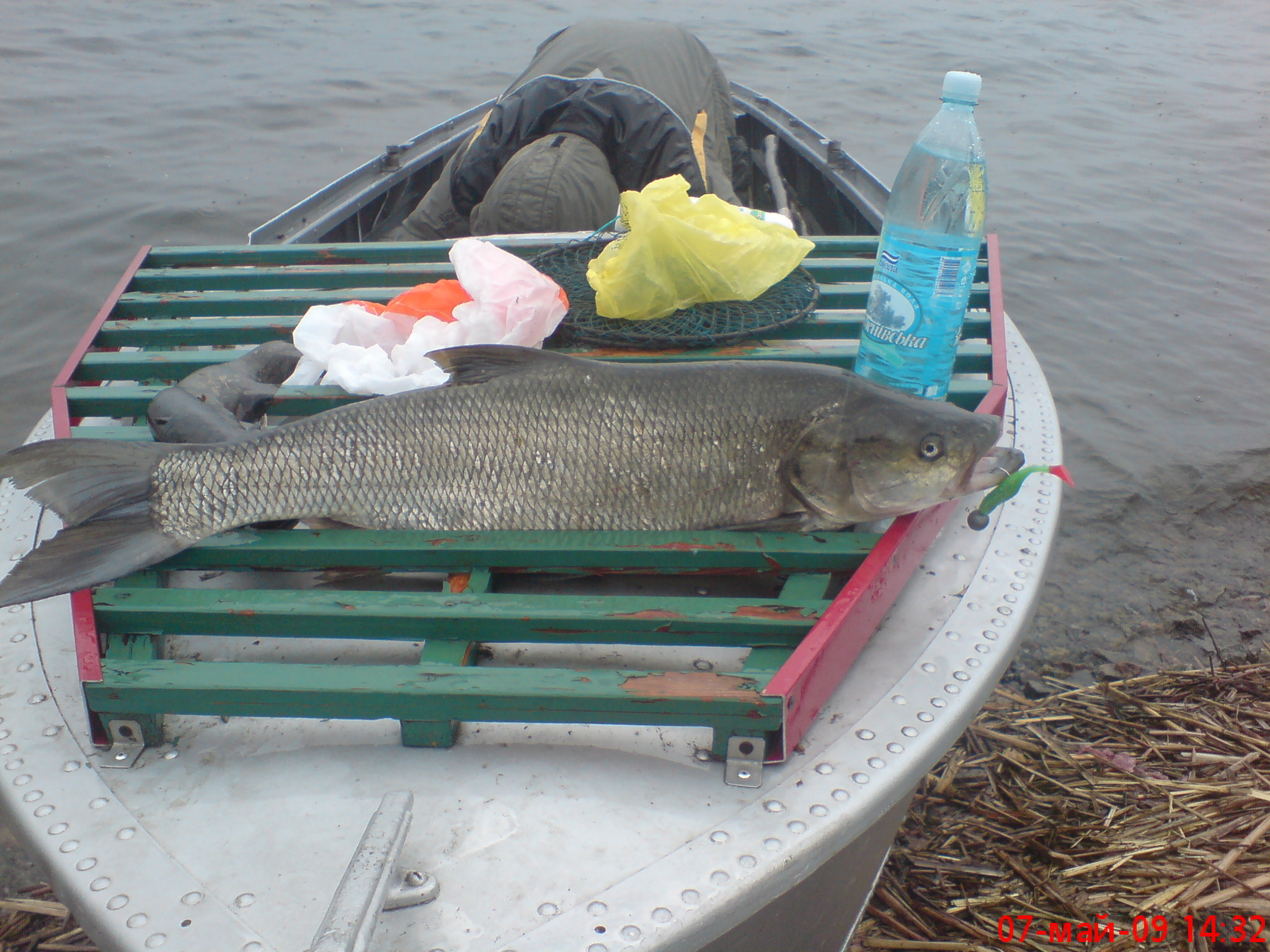 Вышли на 2 лодках. В 7:00 прибыли на место, с начала немного по тролили без успешно после стали на яме у форватора на 2 простукивании у моего друга обрыв при чем рвануло так что было ошушение что мимо пронесся метеор и он его зацепил!)) Через час я словил небольшого судочка 600-гр. на 2 лодке 1 шуку 550-гр. и после этого все затихло перепробовали все что при себе было по нулям. Отличился разве что Олег, утопил висло!)) И попал на 150 гр штрафа! Но по приезду обратно на турдазу случайно наткнулся на 2 мужиков которые показали мне на пичал и привязаный к нему канат. На канате сидели 2 сома киллограм по 18-20. Другие привезли пару шук по 5-6 кг! В общем места хорошие и рыбные что самое главное, а не повезло наверное из-за изменения погоды! Ну весной туда поеду обьязательно!