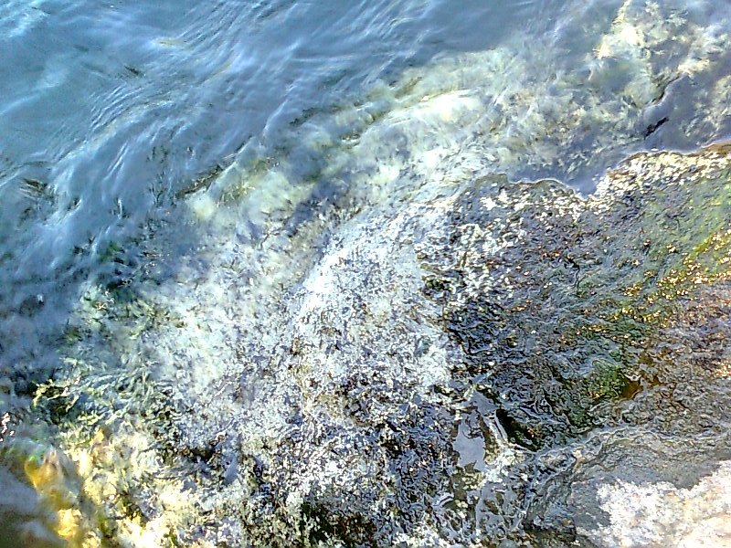 Здравствуйте!Сегодня отдохнув до обеда после ночной смены ,взял спиннинг и на речку.Прошёлся по своим местам даже и нет намека на поклёвку,рыба сегодня игнорировала все наживки какие только ей не предлагал.Увидел интересную штуку камень весь облеплен чьей-то икрой,вот это да, весной такое видел, но что-бы в это время года то вижу впервые.На фото белые пятна это всё икра.