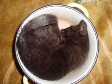 И ещё, наша кошка уснула в кастрюльке. успел достать фотик и сделать фото.