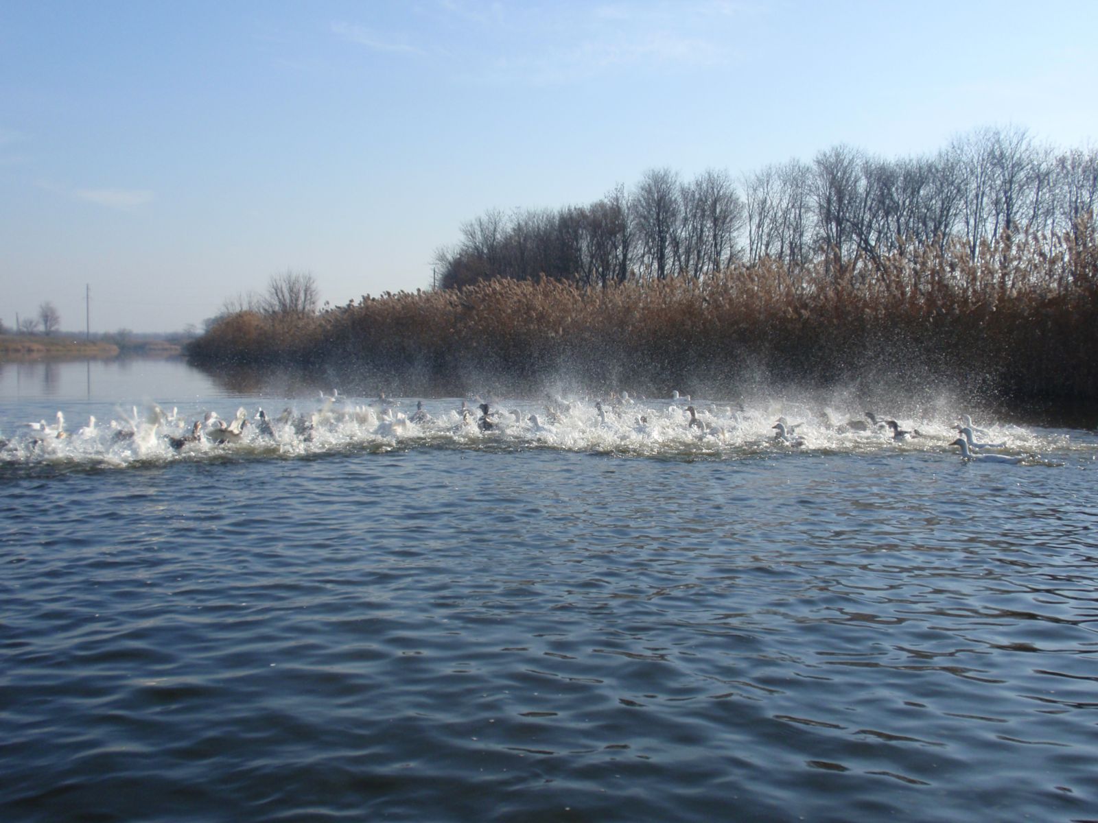 Попытка№2 Во Вторник нашелся транспорт а средства на "Большую"(Сергеевка) рабалку кончились Решили проверить Мокрые Ялы выше по течению...которое почти отсутствовало Погода сопутствовала проведению пикника - теплынь, безветренно и безоблачно! Рыба неразделяла наше восхищение "льготами" Ноября - один выход щуки за всю рыбалку Доночники или Пикинеры по новому развернулись еще до нашего приезда в 6.00 и "отрезали" часть намеченого плёса. "Потеряли" мы 300 метров но оставшегося 1,5 км. хватало с головой - плёс широкий, островки, "рукава" + куча оптимизма К 12.00 оптимизм...почти покинул нас. Дошли до с.Днепроэнергия, где добавили негатива...уже друг другу - я выпустил "первую рыбу"(на снимке), и в дальнейшем остался виноват в том что " больше не поймали"! Напарюги отомстили мне тем что отказались изничтожить сетки за которые мы цеплялись каждые 50 метров...аргументы "отказа" были весомыми правда - всё происходило на глазах аборигенов и грозило последствиями! Попускали слюни на воблер висяший на проводах...высоко(метров 5-6) и 380в - это чревато! Попугали утей, гусей(не первый раз сталкиваюсь с примесью "дикой" крови у домашней птицы, особенно селезни красавцы), погонялся за Фазаном с фотиком...ох и прячется грамотно стервец, как в воду канул! Паутина летит... пчелы, мухи,камыш ( и не только) паростки дал, на склоне много норок...пауки или ящерки!? Ноябрь Эхолот указывает на скопление "разнокалиберной" рыбы на глубинах 3.5 - 4м. но как то местечково, еденичные,крупные особи тоже предпочитали глубину(глубинный рекорд этого плёса 5 метров). Опять мы попали на "выходной" у рыбы Но есть и положительные стороны - погода позволяет, сезон продолжается