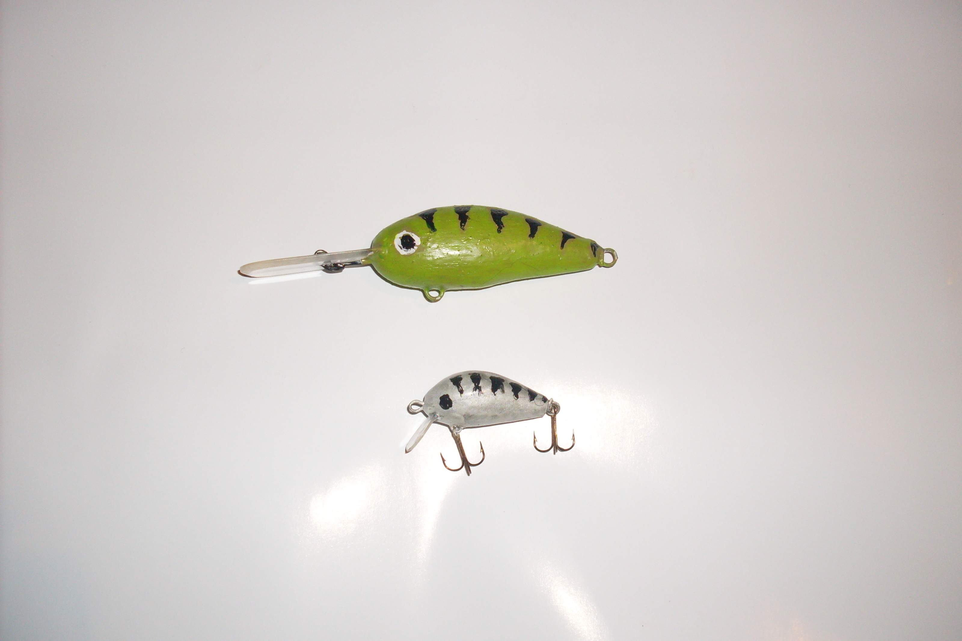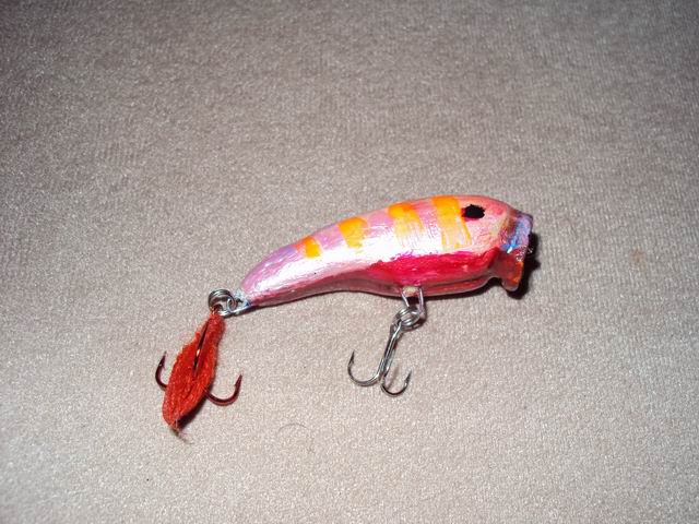 Я тоже предпочитаю красить воблеры лаком для ногтей. Мне нравиться, что лак долго храниться и можно купить очень многих цветов и оттенков. Так как лак часто скалываеться об камни, то лучше сначала покрасить воблер грунтовкой. Вот на фото простейший пример применения лака (кроме черного - черный это нитрокраска). Это мои первые 2 воблера с шариками. До этого с шариками никогда не делал. Готовы еще 4, но пока думаю какие взять цвета.