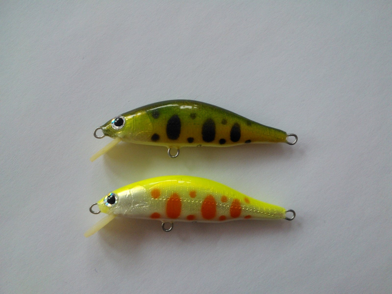 Ще парочка воблерів. Все як завжди, матеріал - бальза, довжина 45мм., вага 2,3гр. тонучі.