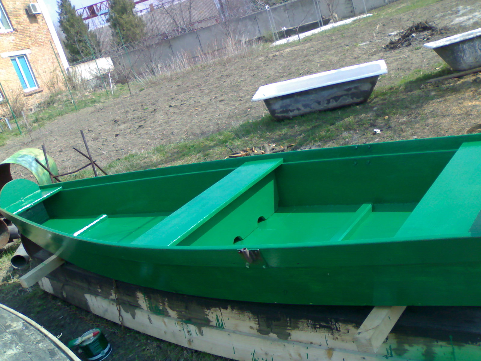 Передок, задок - дуб, чому дуб тому що в місці де кріпиться ланцюг має бути дуже сильна частина (всякі люди є) задок для пропорційності й більш надійного кріплення бокових дошок (бортів). дно лодки - смерек, смерек як на мене саме по собі досить смолянисте дерево а тому й прооліфлювати прийдеться менше, все дно кріпиться в паз й садиться на краску (да імено на краску) бокові й поперечні дошки з сосни. Вся конструкція дошок між собою кріпиться на саморізах й не потрібно ні вякому разі бити цвяхів. Після того як лодка готова обовязково прооліфити (оліфу не економимо), в дальнішому це дасть більшу вологостійкість/проникність в пори дошок. Далі покраска всієї лодки якщо є можливість пулівізатором щоб краска позаходила в усі щілини. Ні в якому разі не просмолювати дно (дошки якщо схоплять вологу то вашій лодці бистро хана). А фарба продовжить життя вашій лодці (єдиний мінус кожного року потрібно оновлювати фарбу в місцях де це є потрібним). Хід в такої лодки дуже легкий й на веслах не говорячи про мотор. Повірте належний догляд і така лодка прослужить довго.