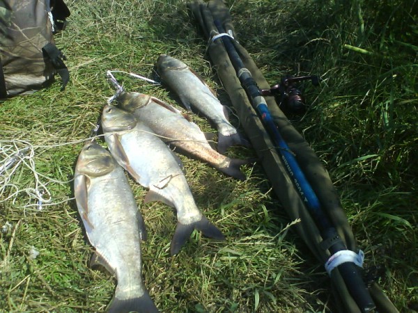 Пользуясь последним отпускным днем сегодня решил целенаправлено половить лобатого на первом ставке в с.Городецкое. Погода вроде-бы благоприятствует : тепло, тихо. На водоеме, действительно заметил активность толстолоба, но ловиться, почему-то он не хотел. С 5.00 до 9.00 поклевок так и не увидел. Зато с 9.00 до 10.00 заработал сразу 6 поклевок- один сход, один обрыв и 4 толстых на кукане. Еще раз убедился в неизученности этой рыбы. Никогда не знаешь как он будет себя вести сегодня. Ловил на гороховую кашу, прикормку "Фиш-Дрим"- Толстолобик, но все поклевки заработал на технопланктон венгерский с запахом меда и ванили. Ловил на поплавочную оснастку с глубиной отпуска -30 см. Думайте, пробуйте, экспериментируйте. Всем удачи и хорошего клева !:ura: