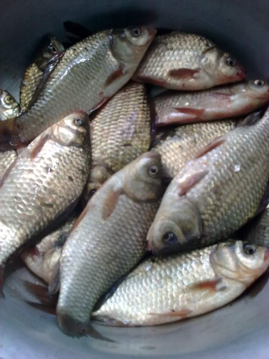 Здравствуйте. Вот уже неделю как нахожусь в отпуске, но из-за домашних ремонтов нету времени выехать на рыбалку (паручасовая рыбалка рядом с домом на пруду Осташевка уже немного надоела). Учитывая праздник – мастера не работают, я планировал посвятить и сегодняшний день покупке некоторых материалов для ремонта. Но вчера сын уговорил выехать на рыбалку (да я особо и не сопротивлялся). Сегодня в 04,45 выехали из города и в 05,30 уже на пруду который находится на реке Ятрань в одном из сел Уманського района. Хотя подготовил разнообразные наживки – карась клевал на навозного червя, в кормушке кукурузная каша с макухой. На горох было поймано нескольку крупных карасей. Клев был постоянный и равномерный до конца рыбалки, до 14,00. На двоих с сыном поймано 7,5 кг карася. Отдохнули отлично, отвели душу, длительного ожидания поклевок ждать не приходилось, учитывая, что поймано и тут же отпущено подрастать примерно, общим весом, 2,5 кг карпа весом примерно 200 - 400 грамм каждый. Результат на фото. Всем удачи.