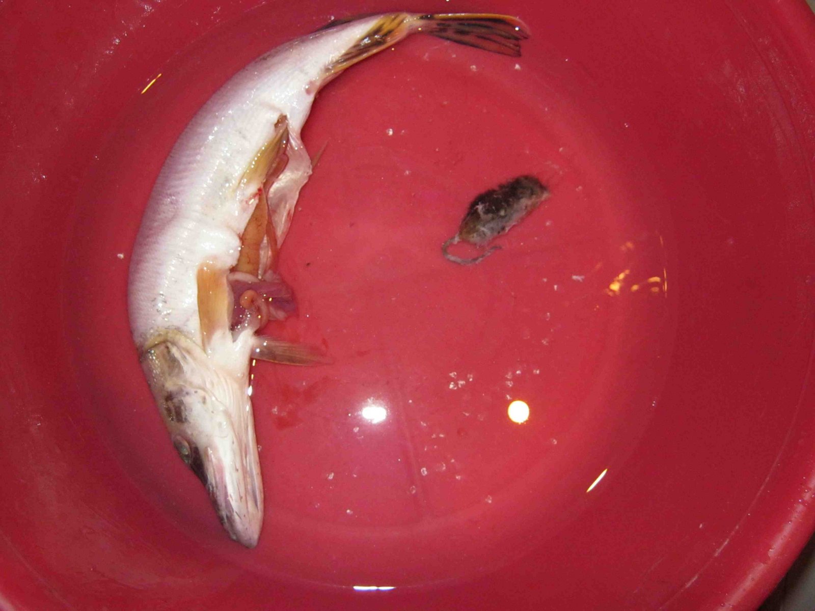 На силіконовий твістер Кайтеч взяв невеликого щупачка. Живіт був круглий (видно що сита, але спокусилася на їстивну гуму). Вскритіє показало всередині неперетравлену польову мишку. Варто подумати про поверхневий воблер у вигляді миші.