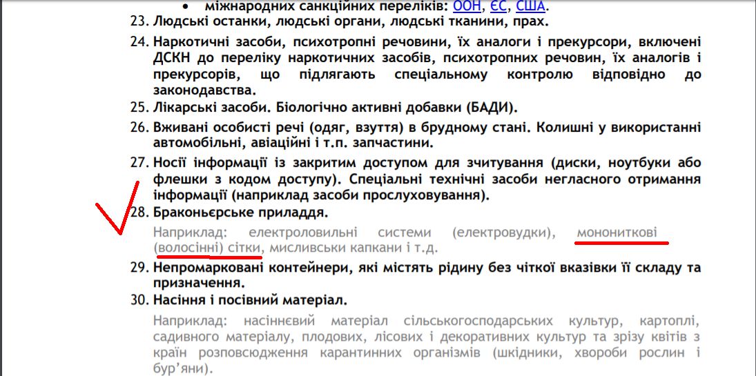 Что характерно, статья 53 Закона Украины "Про тваринний світ" четка гласит: "Забороняється ввезення в Україну електроловильних систем (електровудок), монониткових (волосінних) сіток" - то есть вся эта поганая продукция в Украину официально не поставляется (на таможне действует запрет по кодам УКТВЭД!), а значит все что из этого продается в магазинах, на прилавках, на интернет-площадках, по объявлениям и т.д. либо самодельное либо завезено в Украину нелегально - т.е. КОНТРАБАНДА!!!
