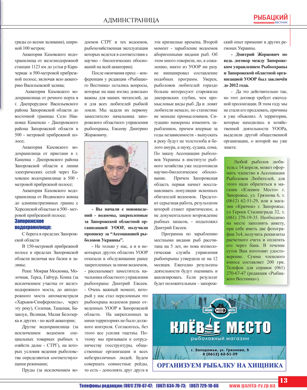 Ассоциация рыболовов Украины обращается к Рыболовам Запорожья