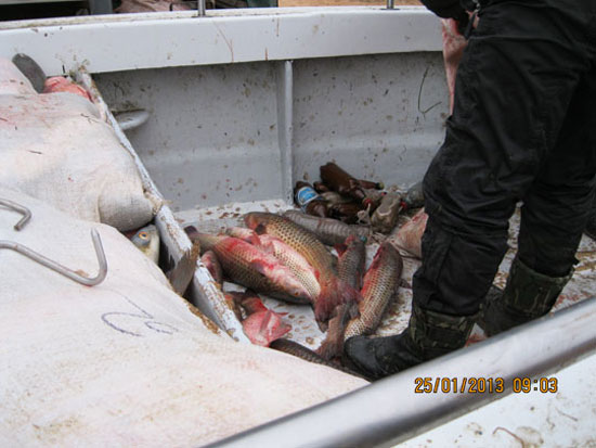 10.01.2013 г. в 18.00 Азовское море, Бердянский залив, на краю Бердянской косы государственными инспекторами Азоврыбоохраны были задержаны граждане, которые на катере «Сарепта» б / н с подвесным двигателем «Сузуки» занимались незаконным ловом рыбы и выловили рыбу: пиленгас - 79 шт./103 кг и судак - 1 шт. / 0,5 кг.