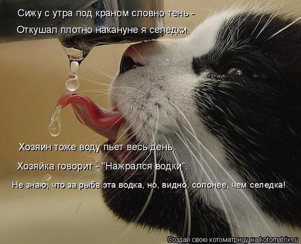 В пьянке не замечен, но по утрам жадно пьет холодную воду.