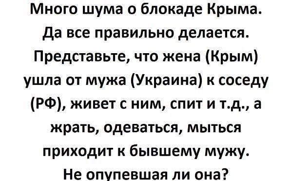santer, Так я , шо то плохо вижу. ...Все-таки одну фуру в Крым пропустили... И чего эту одну дуру пустили в Крым. Наверно начался бархатный сезон, таки.