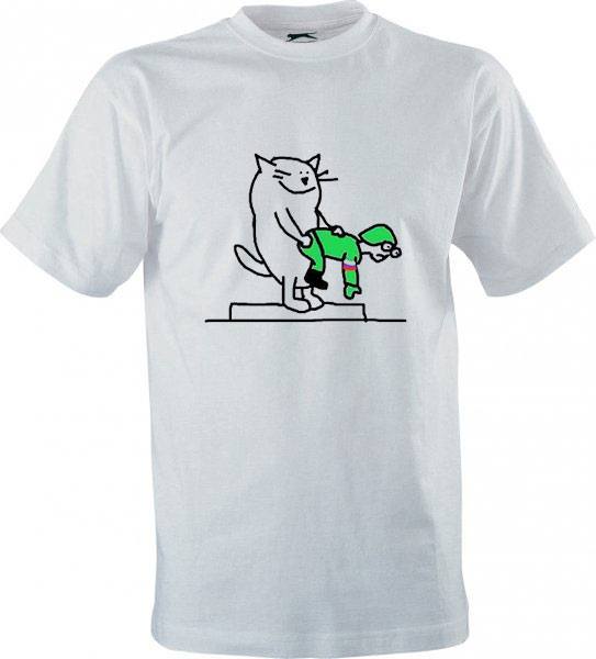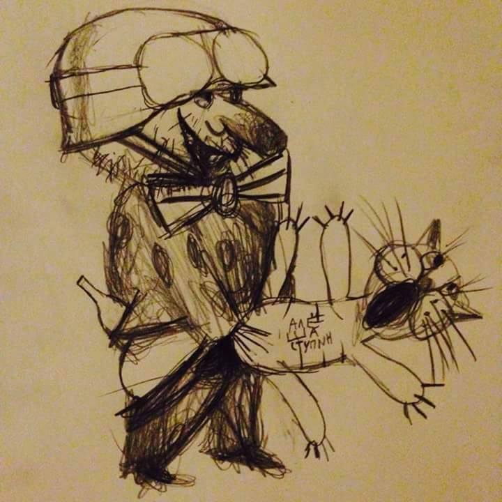 У Бахчисараї відкрили пам'ятник зеленому, хворому на гідроїнцефалію, який ґвалтує кота. Как известно, дети очень непосредственны и живо реагируют на происходящее, со всей присущей им фантазией Алеша Ступин из Реутово поделился с нами впечатлениями об одном недавно открытом в Крыму памятнике Правда, Алеша еще маленький, поэтому не мог знать, что по технике безопасности ебомый кот должен находиться в валенке Впрочем, от этого рисунок не становится хуже. Футболка от Каптёрки .