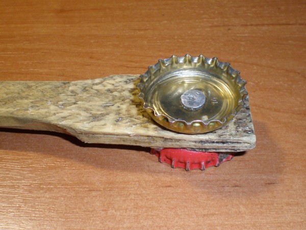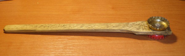 Есть еще одно простейшее устройство для чистки рыбы. Особенно удобно для чистки таких рыб как окунь, ерш, судак. Берете деревянный брусочек длинной 20-30 см и в конце прибиваете гвоздиком или ставите на заклепку две крышечки от пивных бутылок. С таким инструментом справляется даже моя супруга, которая всегда раньше отказывалась чистить окуня и судака. Попробуйте, не пожалеете.