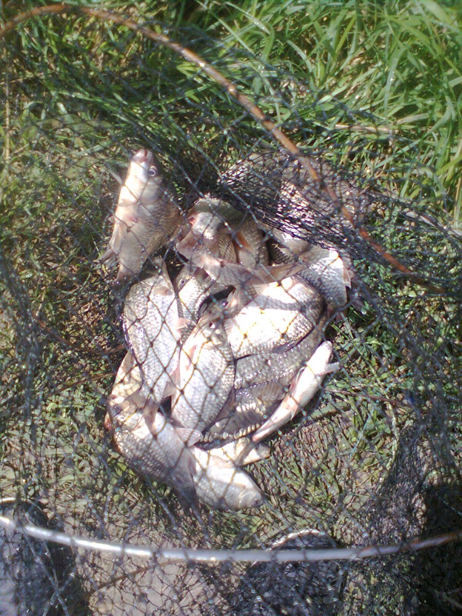 Не знаю как остальные, но мы немного натягали карасей, где то по килограмм 4-5 каждый наловил, попадался мелкий карпик от 30 до 150 грамм, которого мы отпускали, мне попался не плохой окунь грамм 250, а друганя поймал плотвичку грамм 200, до вечера не смог сидеть в такую жару где ветра ноль, и в 14:30 мы довольные времяпровождением уехали домой.