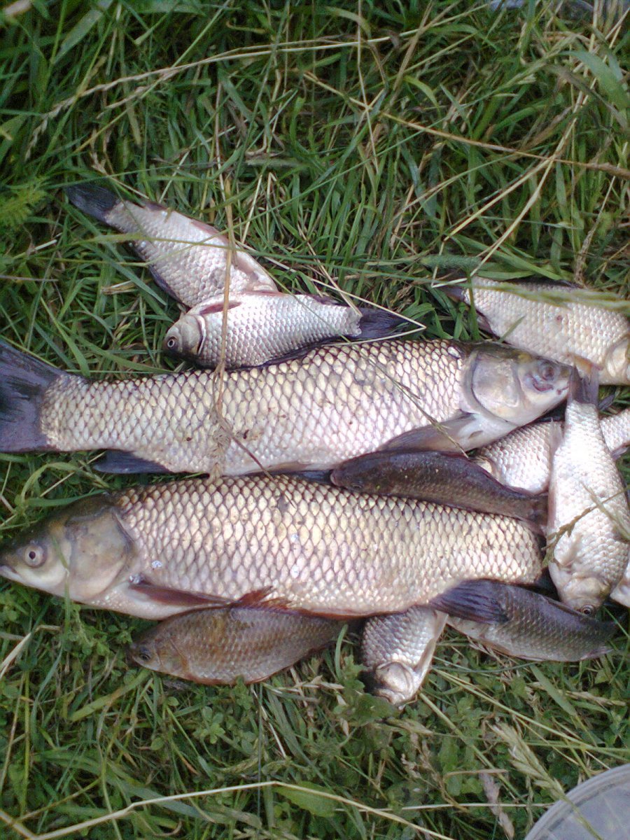 :solnce2:Вітаю! Був вчора на даній водоймі. Плата так і залишилась 50-гр. ( навіть дозволяють рибачити на суткі!) Рекомендовано кидати приваду не дальше 50-ти метрів від берега,хоча смачні єкземпляри гуляють трошкі дальше, інакше всі жилізякі будуть відірвані в старий скошений очерет. Ловив на пінопласт із кормушкою, в яку заправляв, недоварену кукурудзяну крупу + прикормка для холодної води ,,Універсальна" з бетаіном, 70 %+ 30%. Карась- мілкий, можна відро набомбить, хоча я багато викінув, щоб домашніх не нагружать. Пара карпіків по 300 гр. були відпущені.:poplavok: Два білих амури, в воді конкретний соперник, і один зеркальний карпік кілограмовий були бонусом. В 15-00 почало затягувать небо не по дитячому. Набравши св"яченої водичкі рванув додому. Ось така видалась рибалка.:gi-gi: